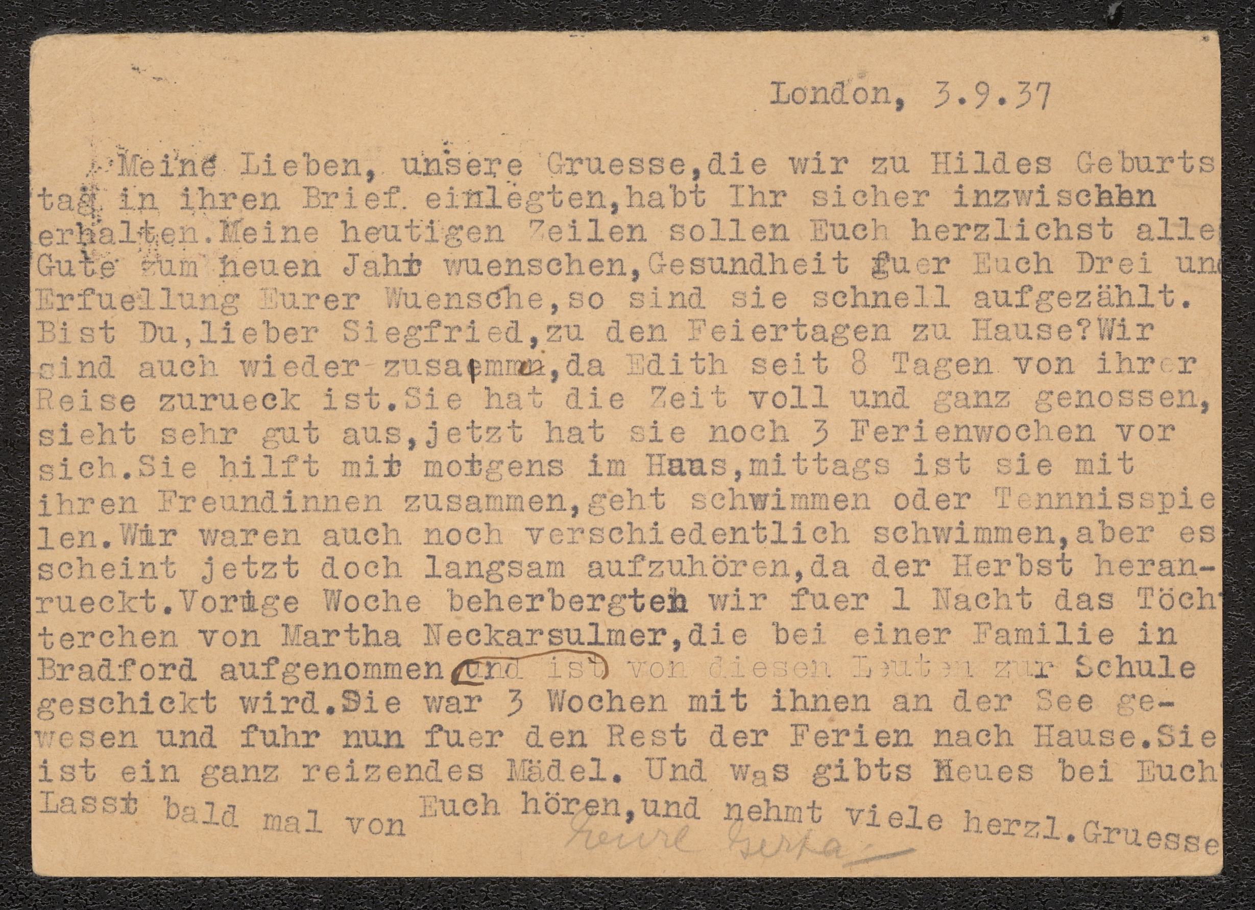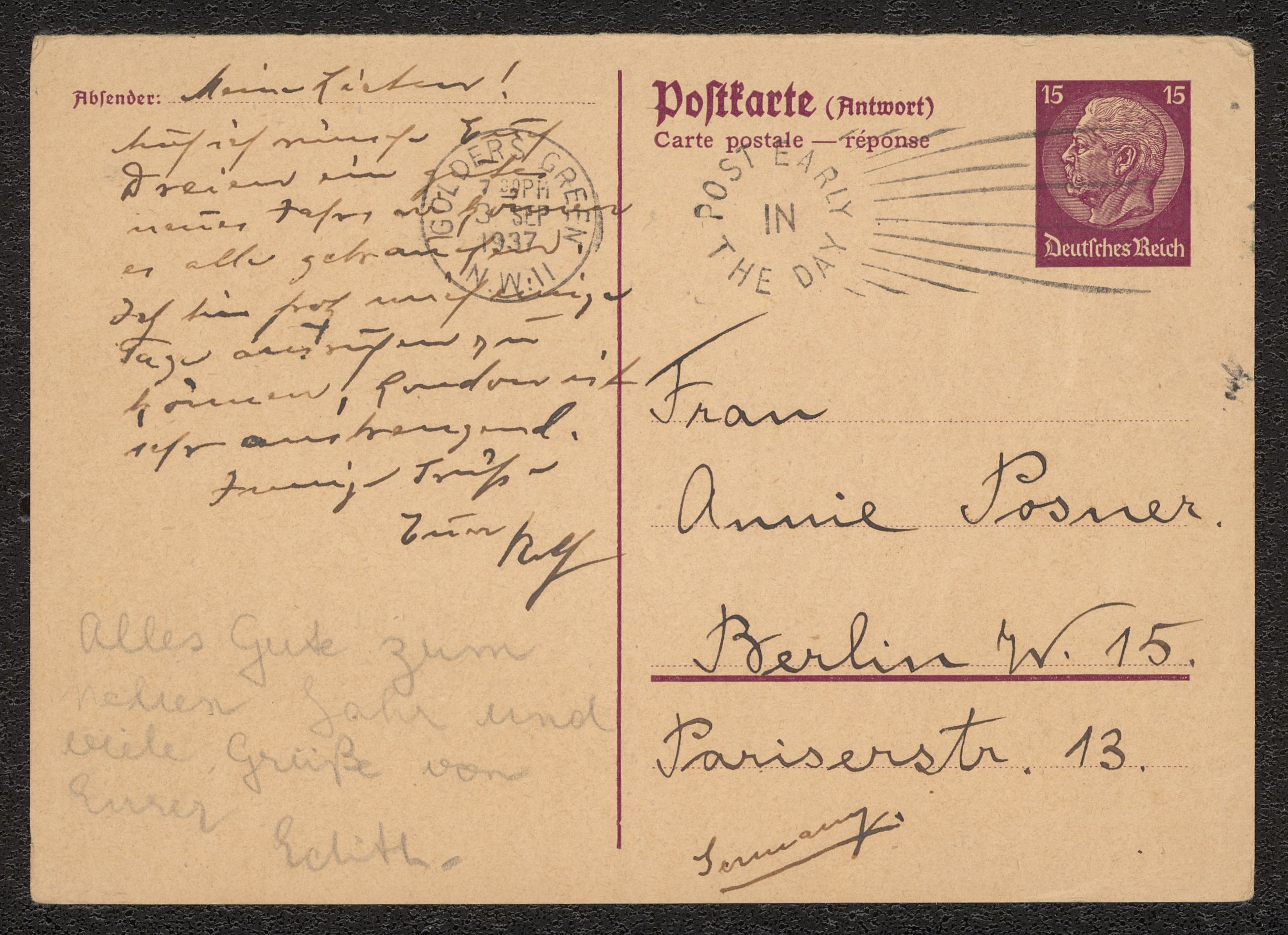 Brevkort till Anna Posner från Gerta och Edith