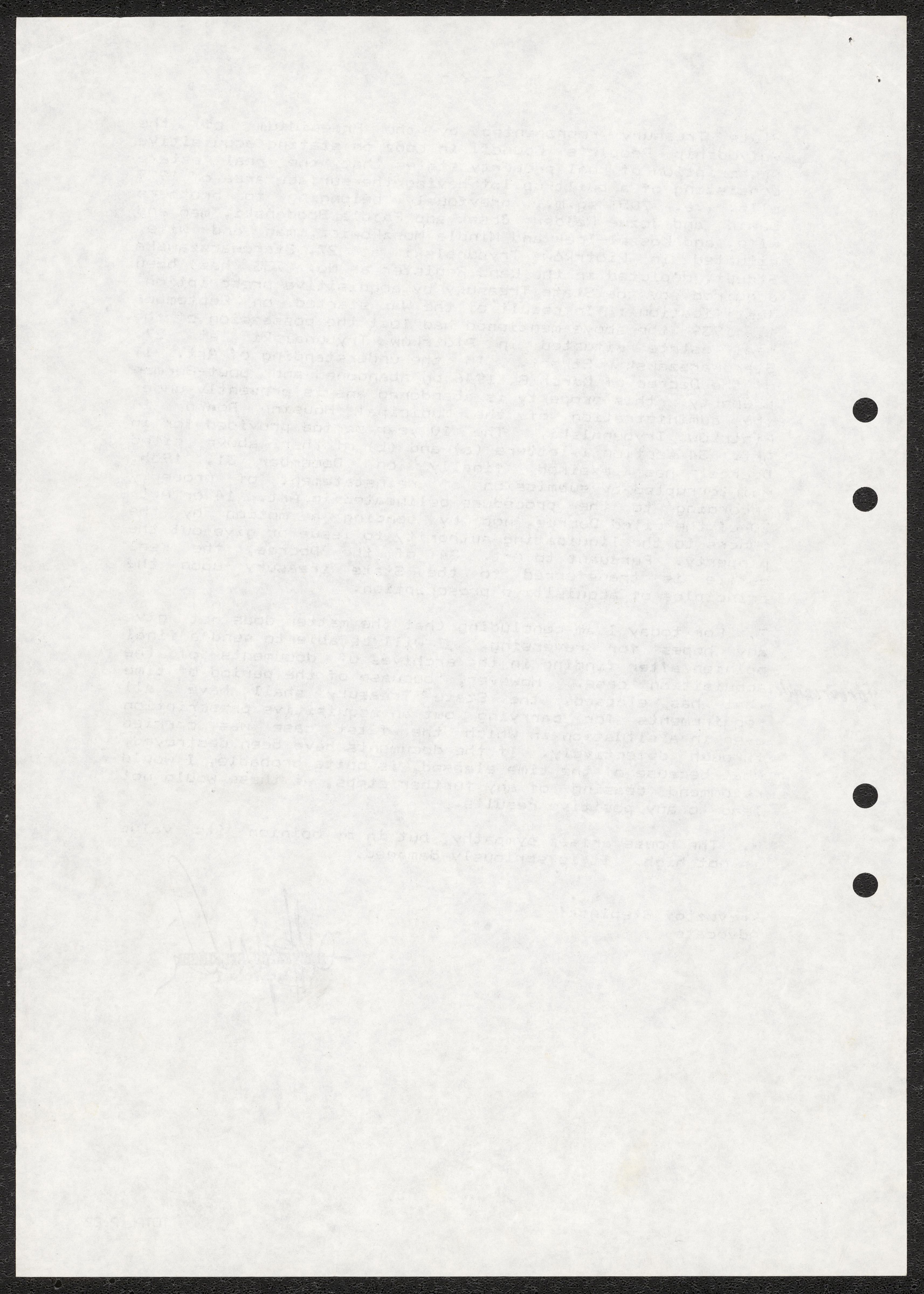 Två sidor kopierad maskinskriven text samt ett visitkort.