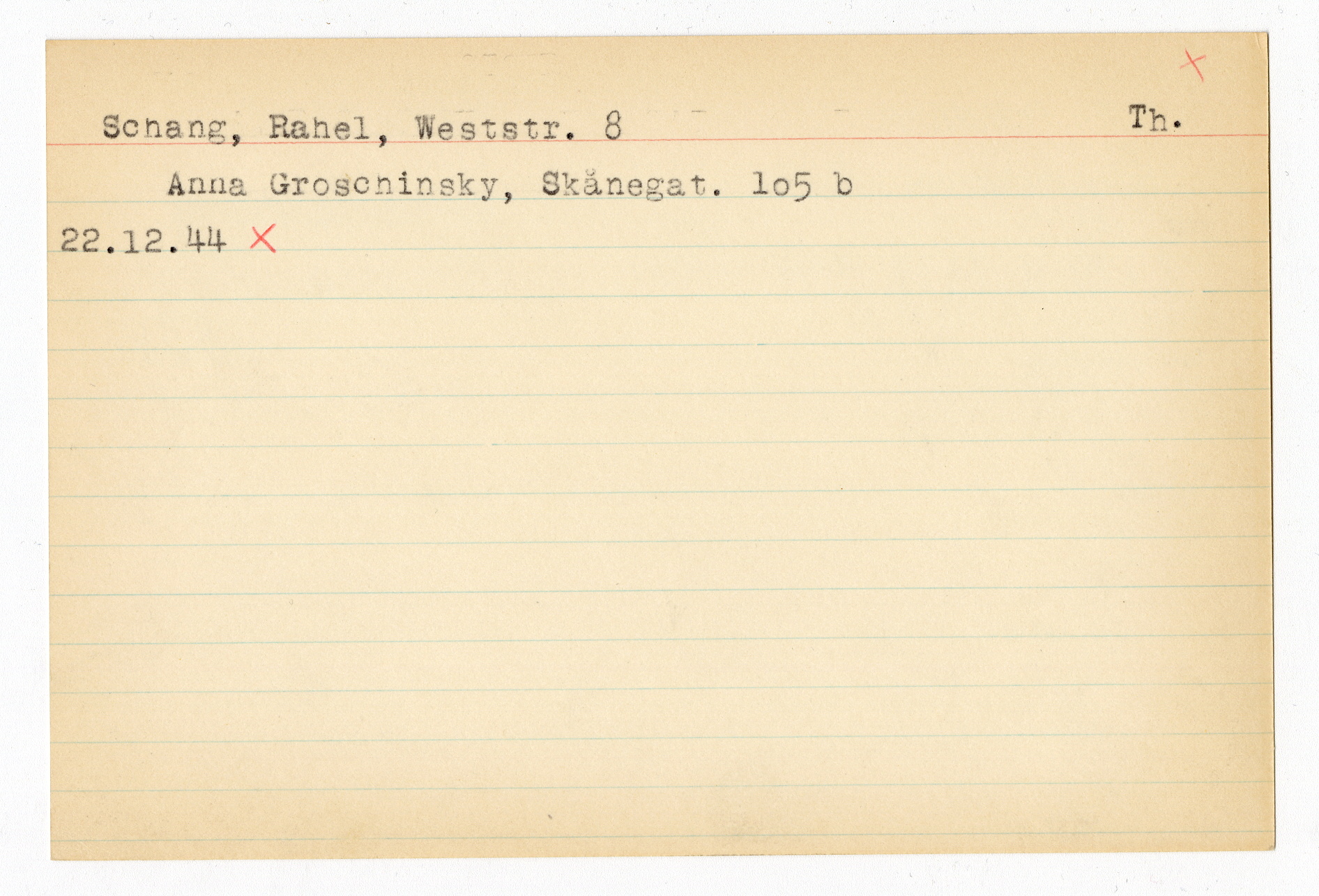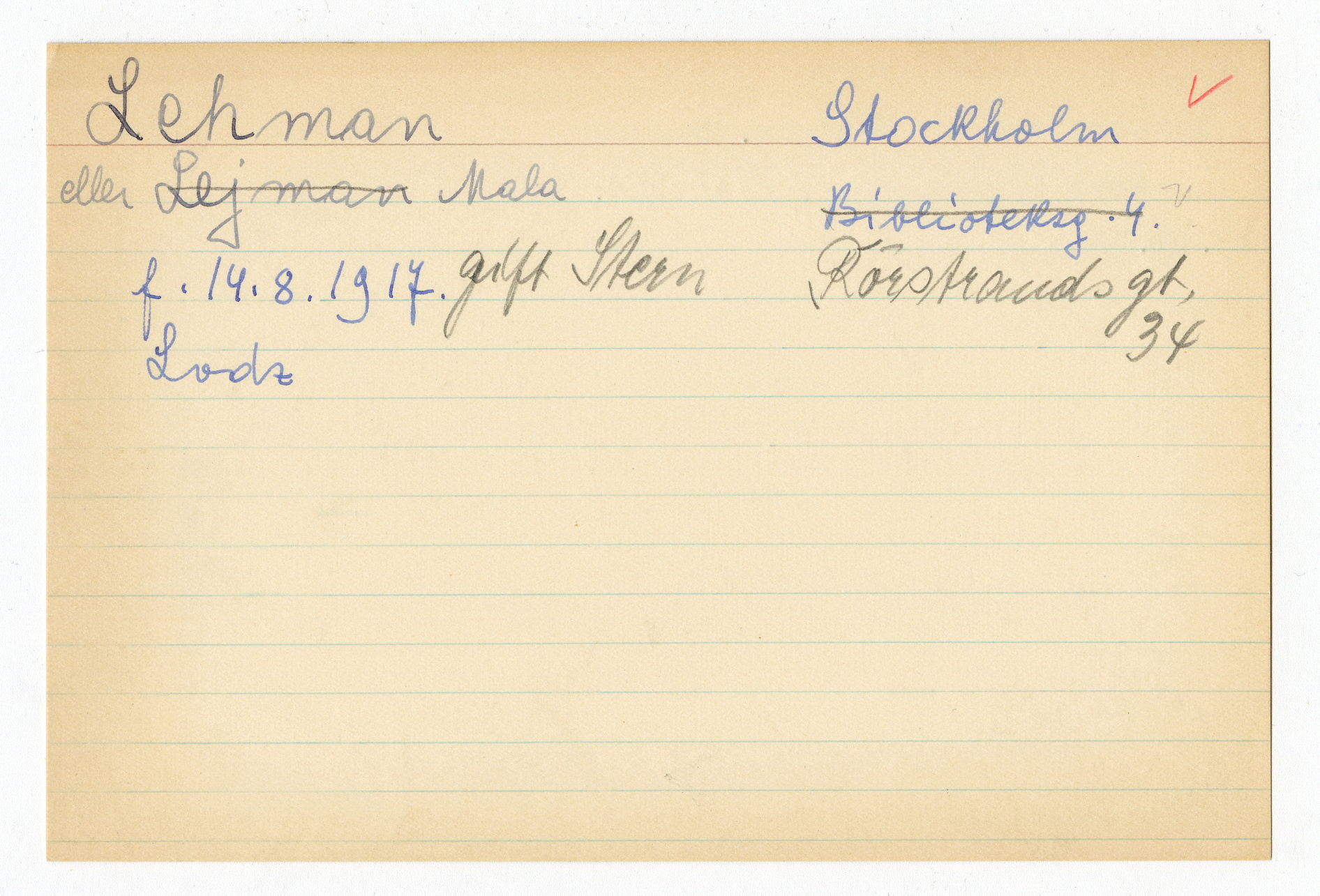 Registerkort Mala Lehman och Rachel Schang