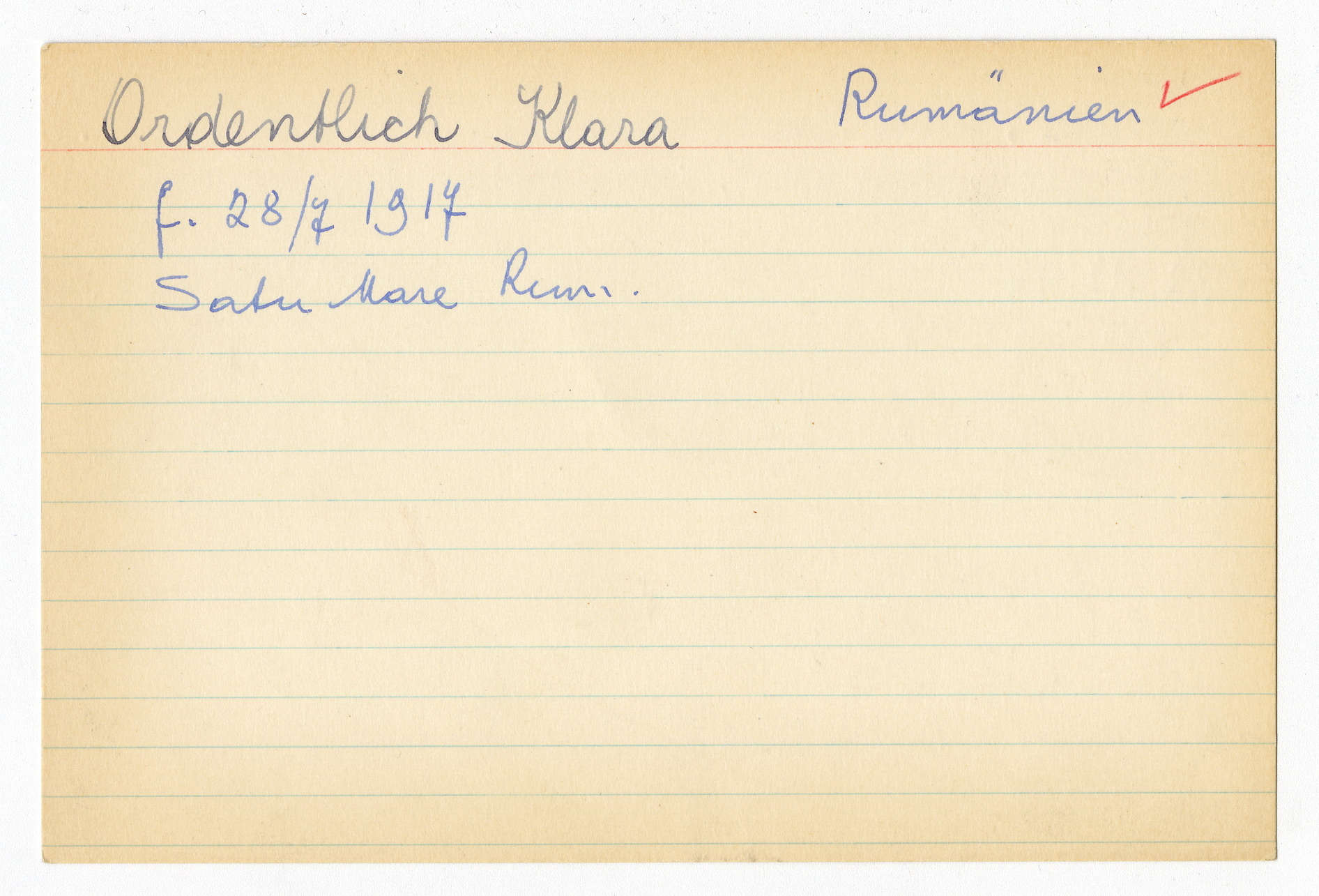 Registerkort Klara Ordentlich och Hulda Sommerfeld