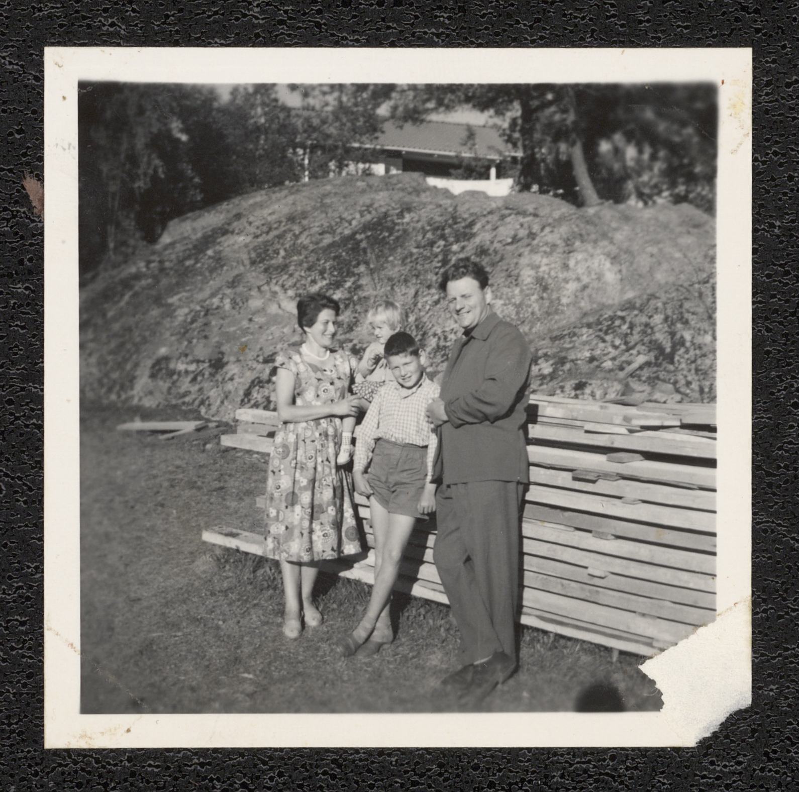 Rosa Gustafsson tillsammans med maken Gunnar, sonen Lars-Åke och fosterdottern Lena. Bilden är tagen på utsiktsplatsen vid Vista kulle i Gränna.