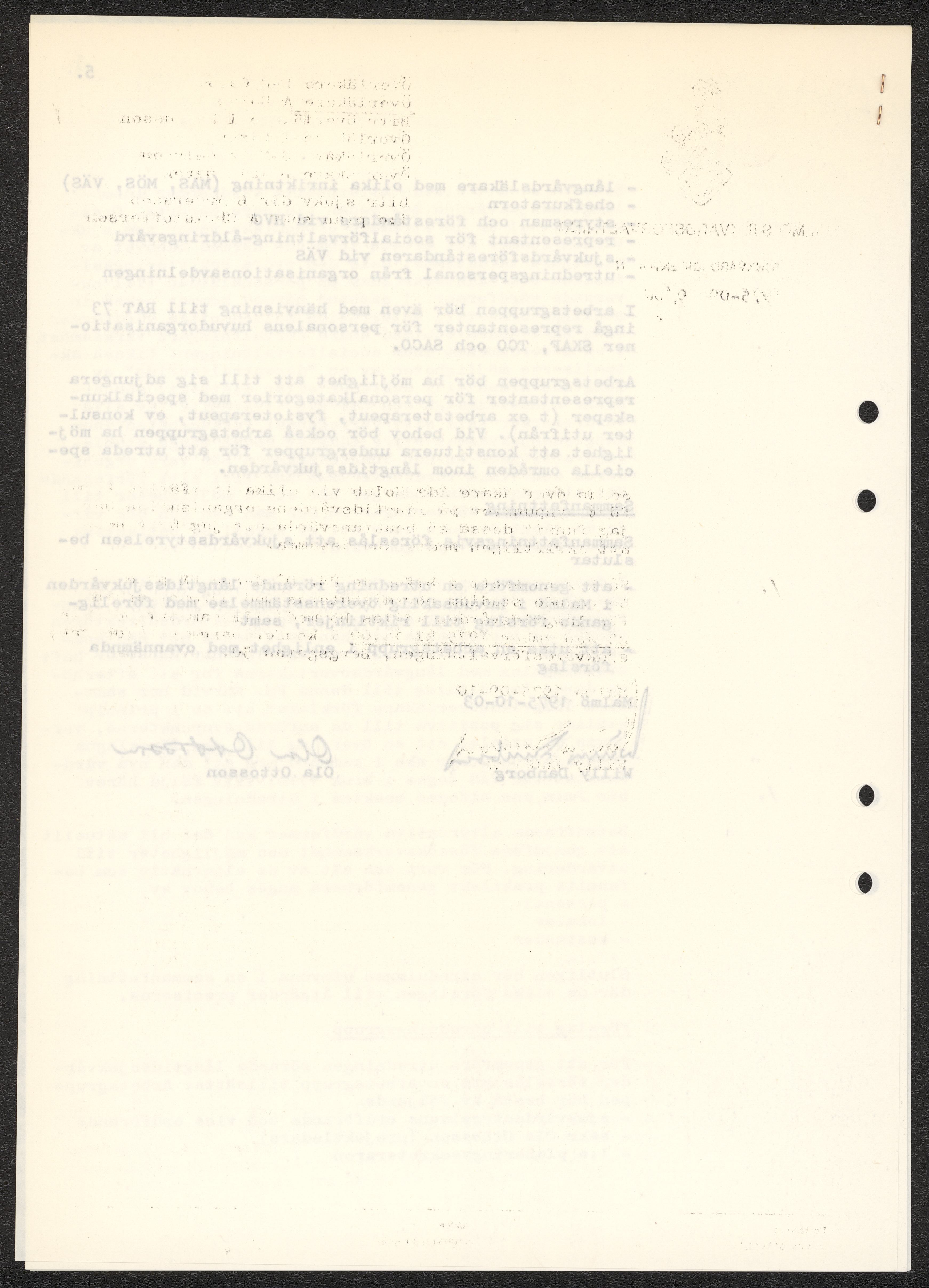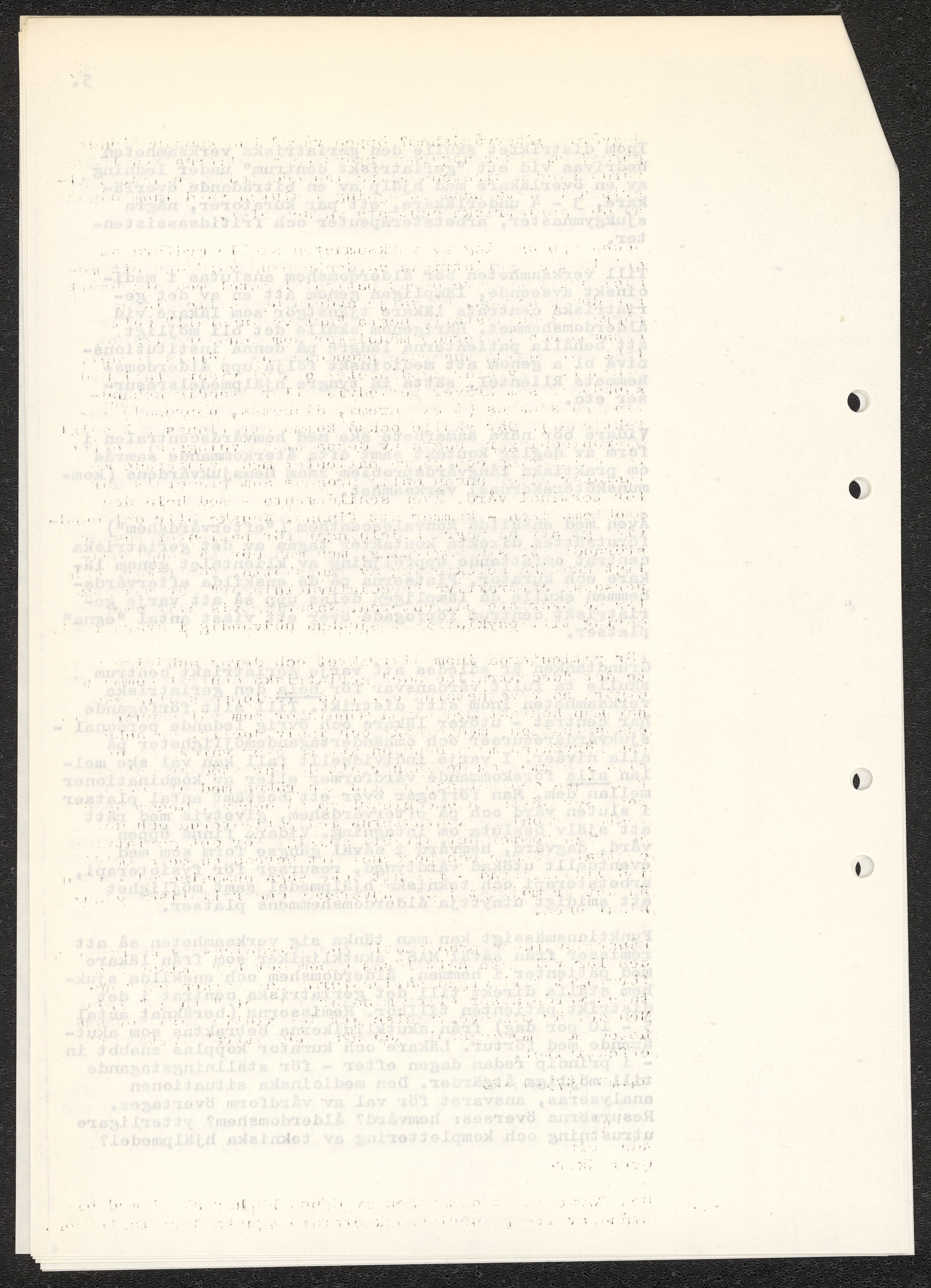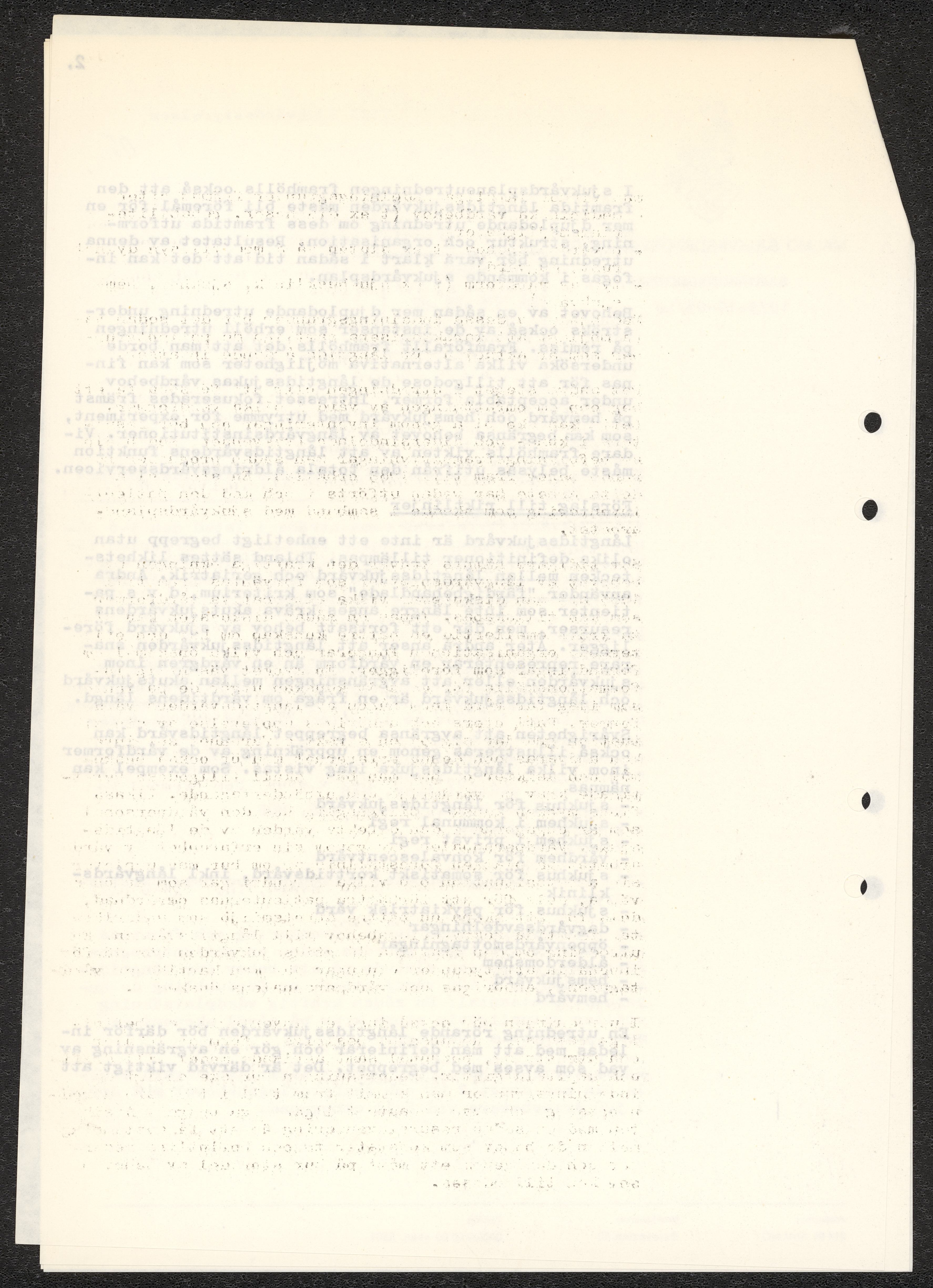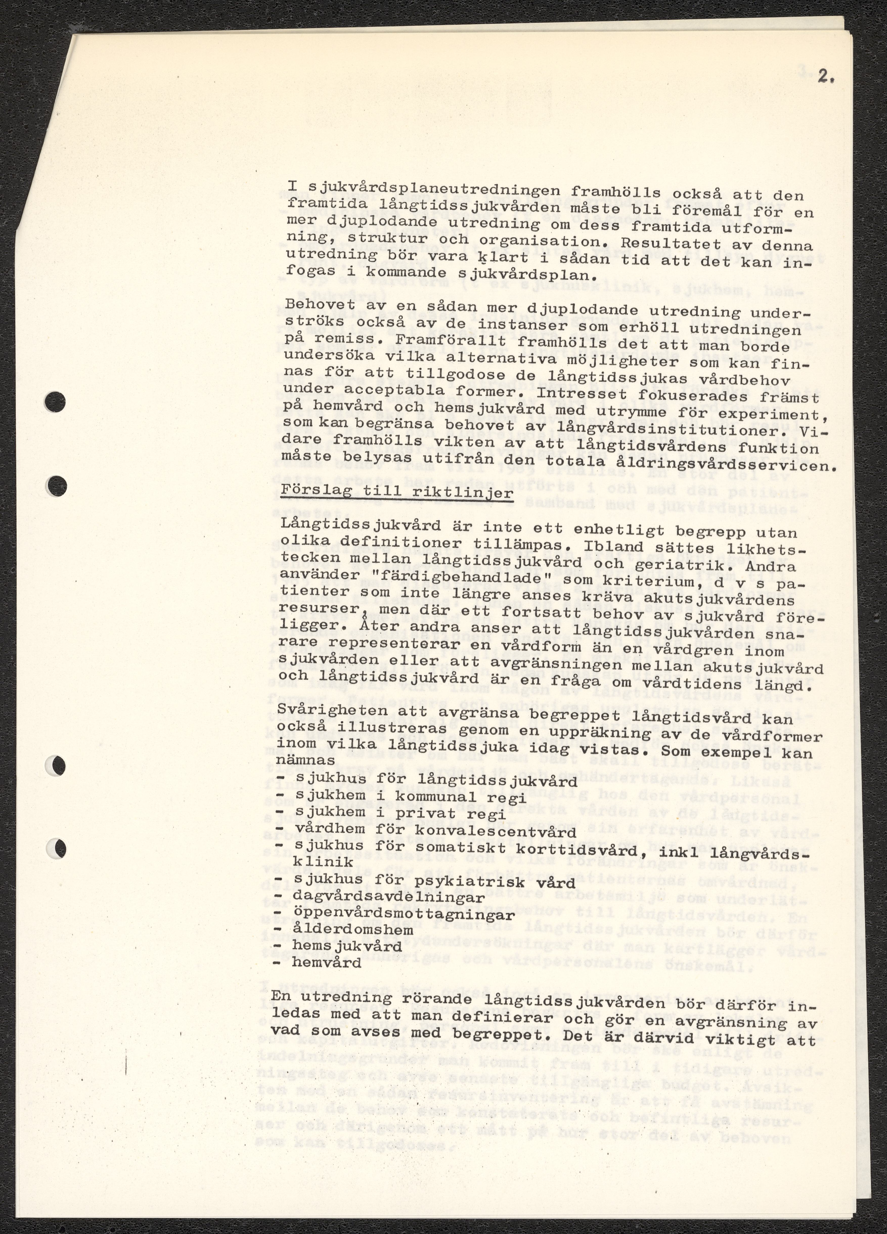 Dokument rörande långvårdens organisering i Malmö. Pm angående långtidsvården, skrivet av Ada Holub. Kopia av kallelse till möte att diskutera Holubs PM vid Malmö Sjukvårdsförvaltning. Förslag från Malmö sjukvårdsförvaltning gällande organisatoriska förändringar. Fotostatkopia av artikel "Så kan Malmö lösa krisen: Långvård i små centra" samt Personaltidning för sjukvårdsförvaltningen i Göteborg.