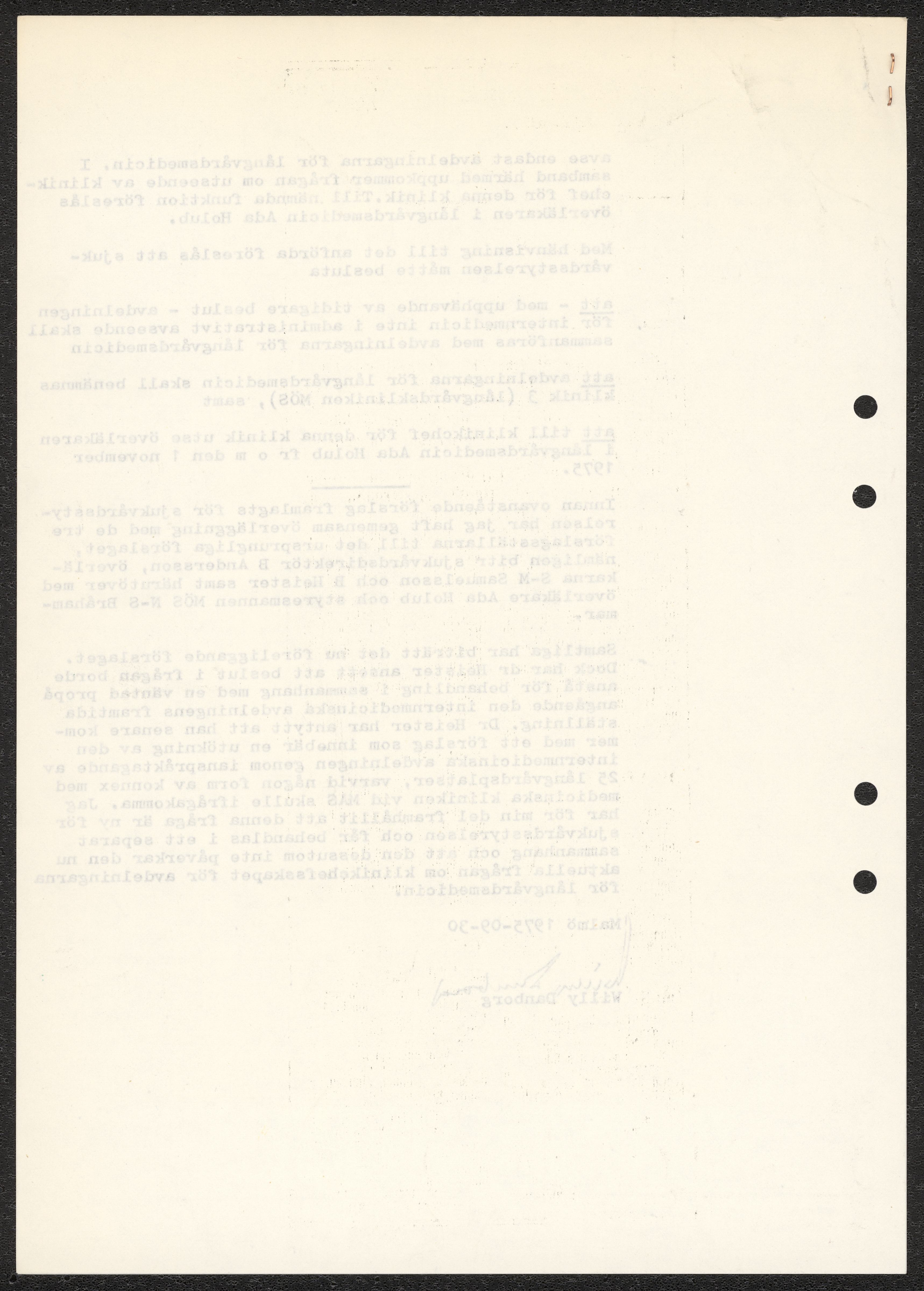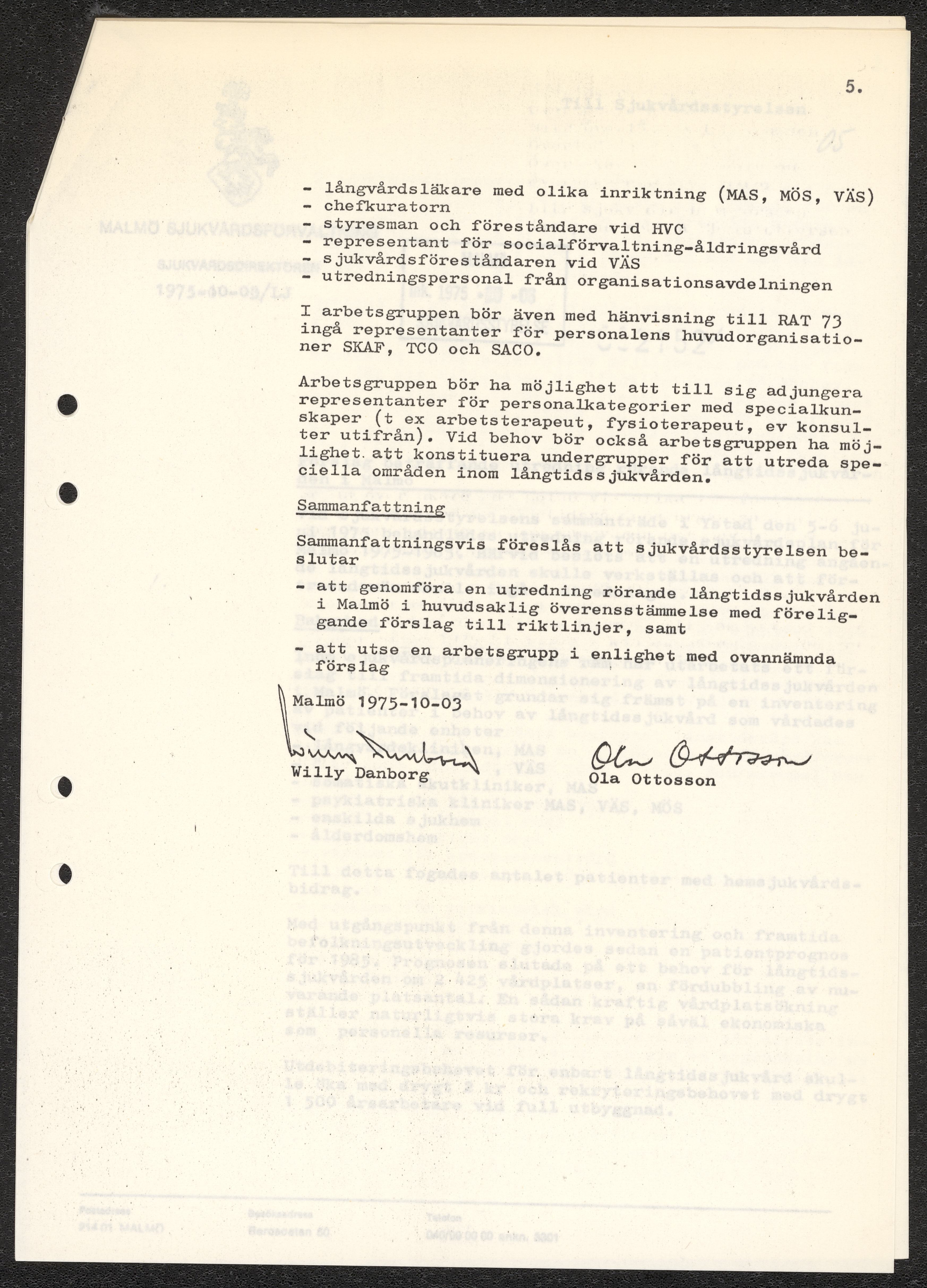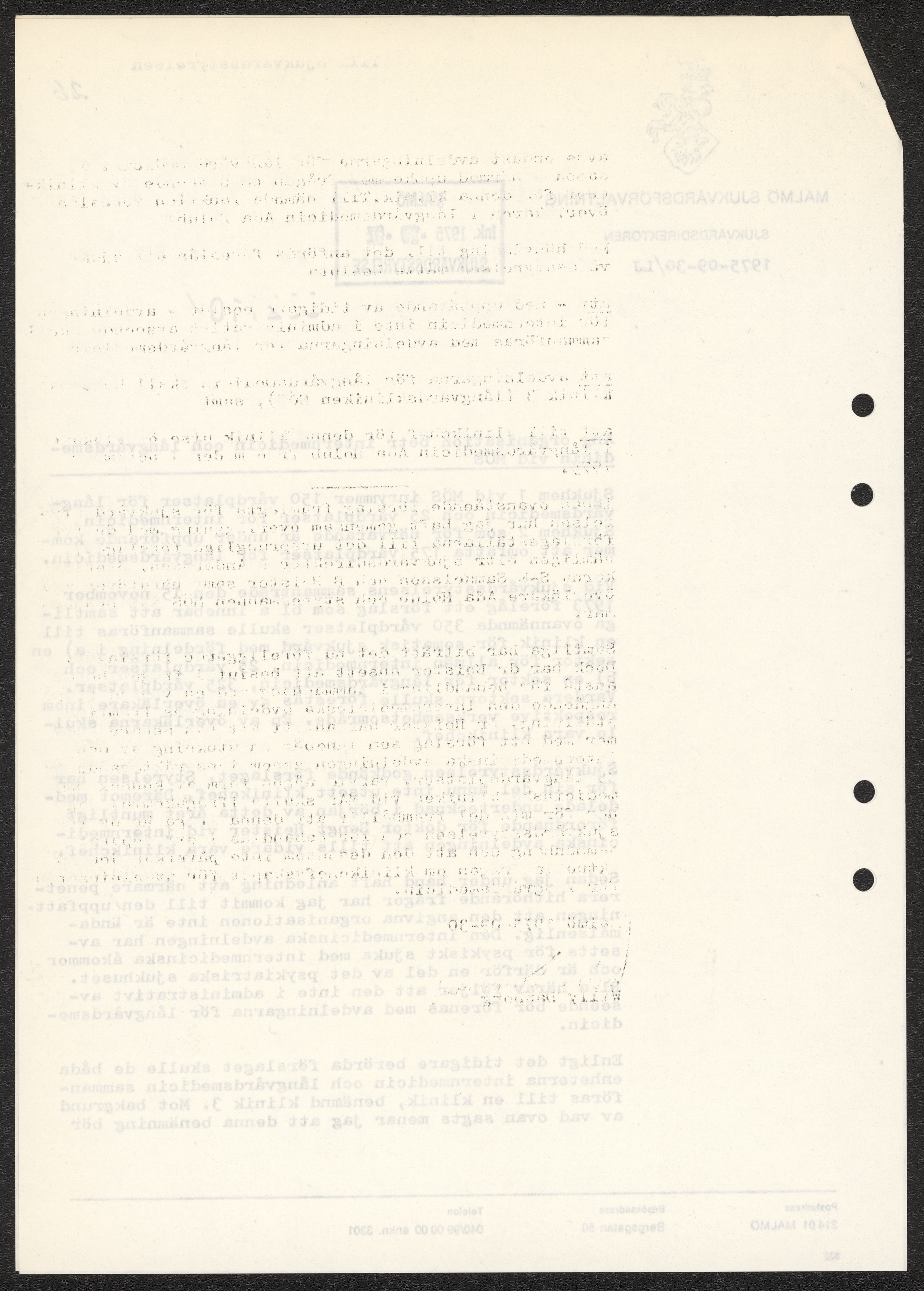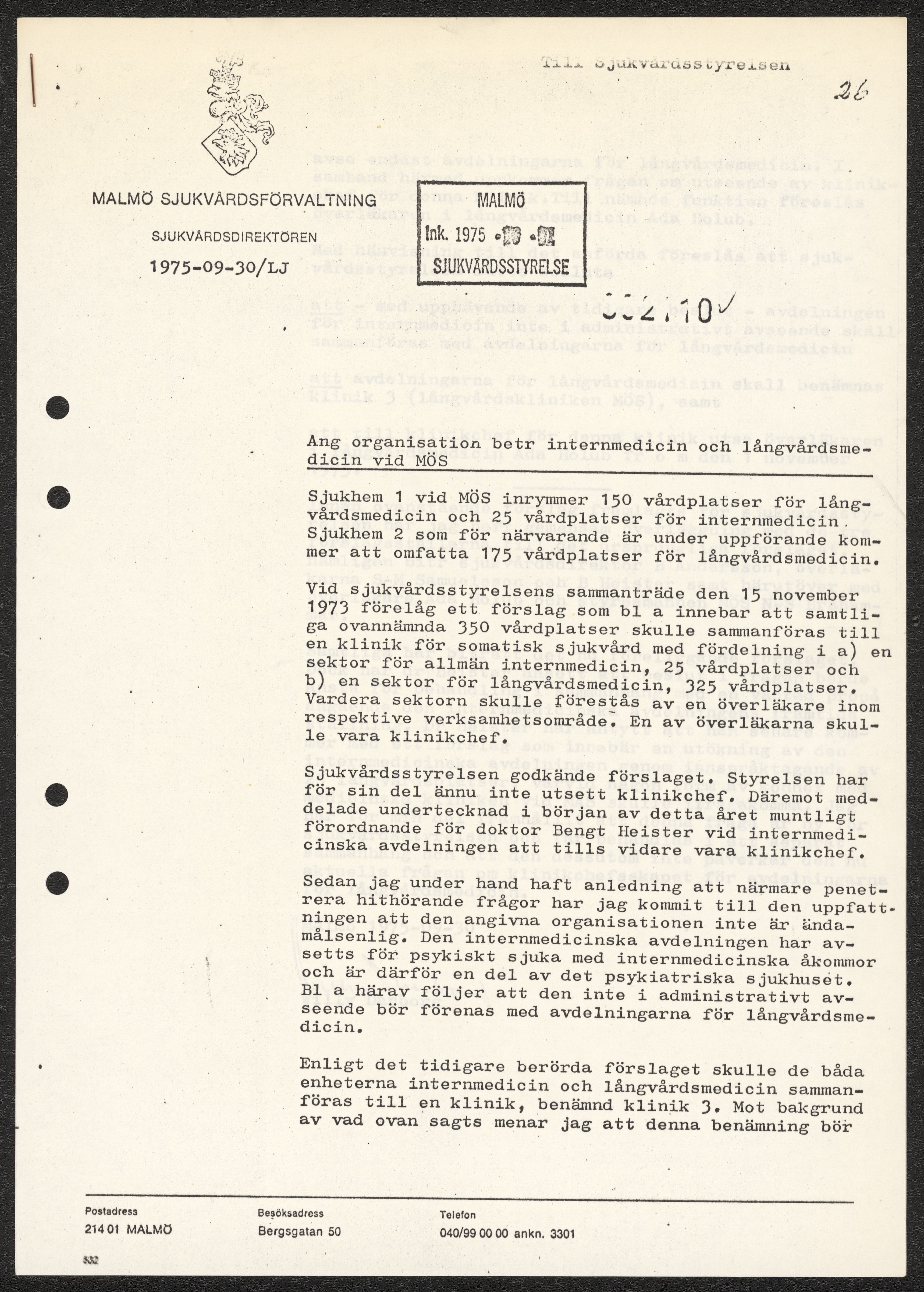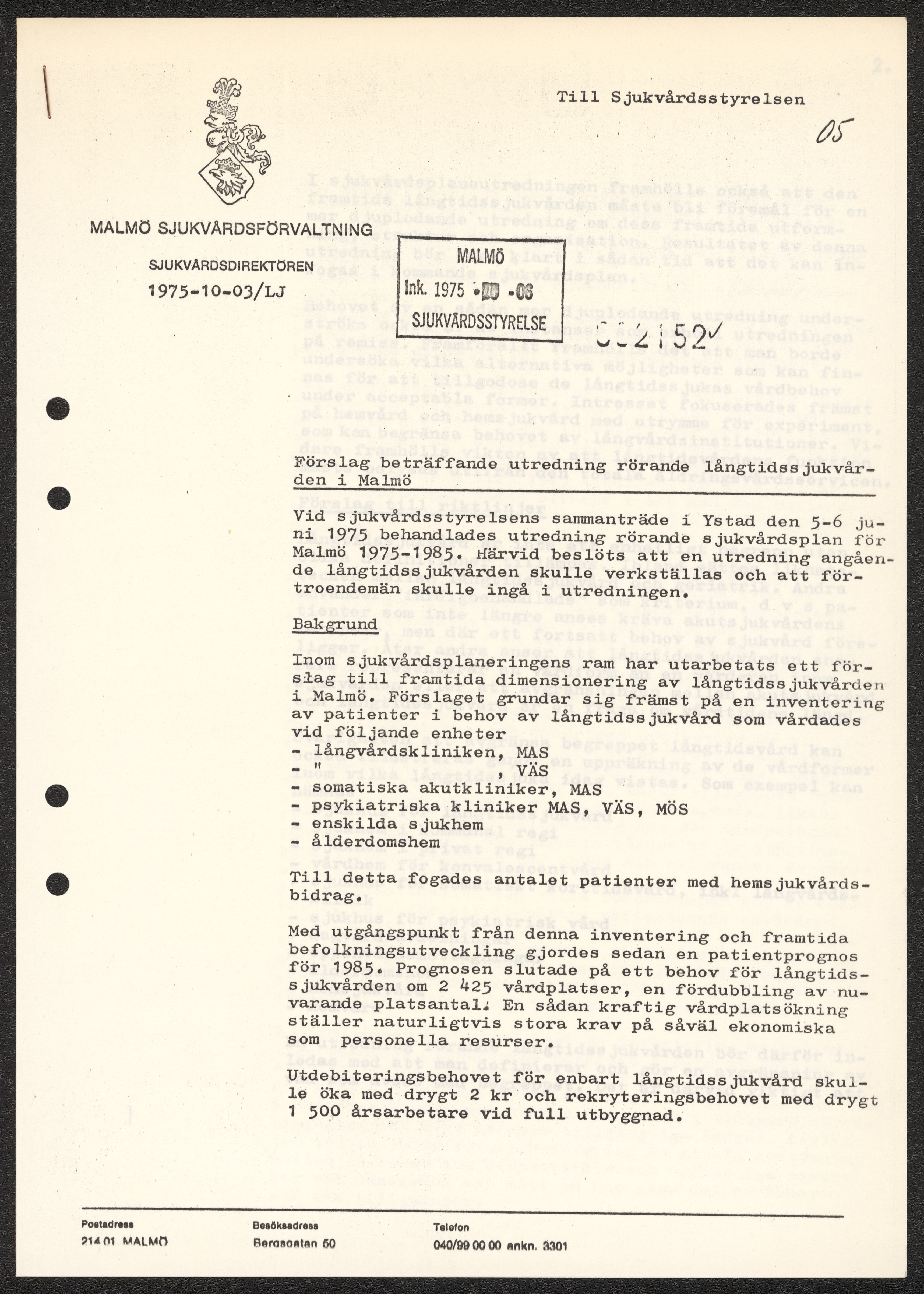 Handlingar rörande långvårdorganisation i Malmö 1975