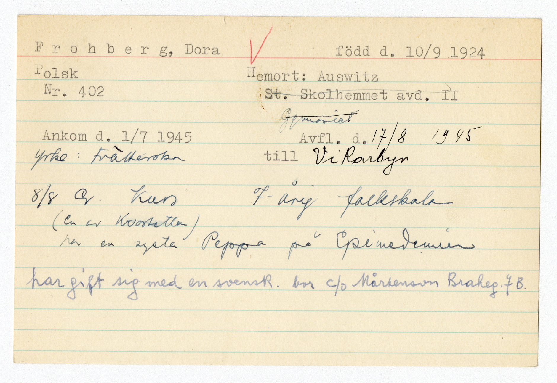 Registerkort Dora Frohberg