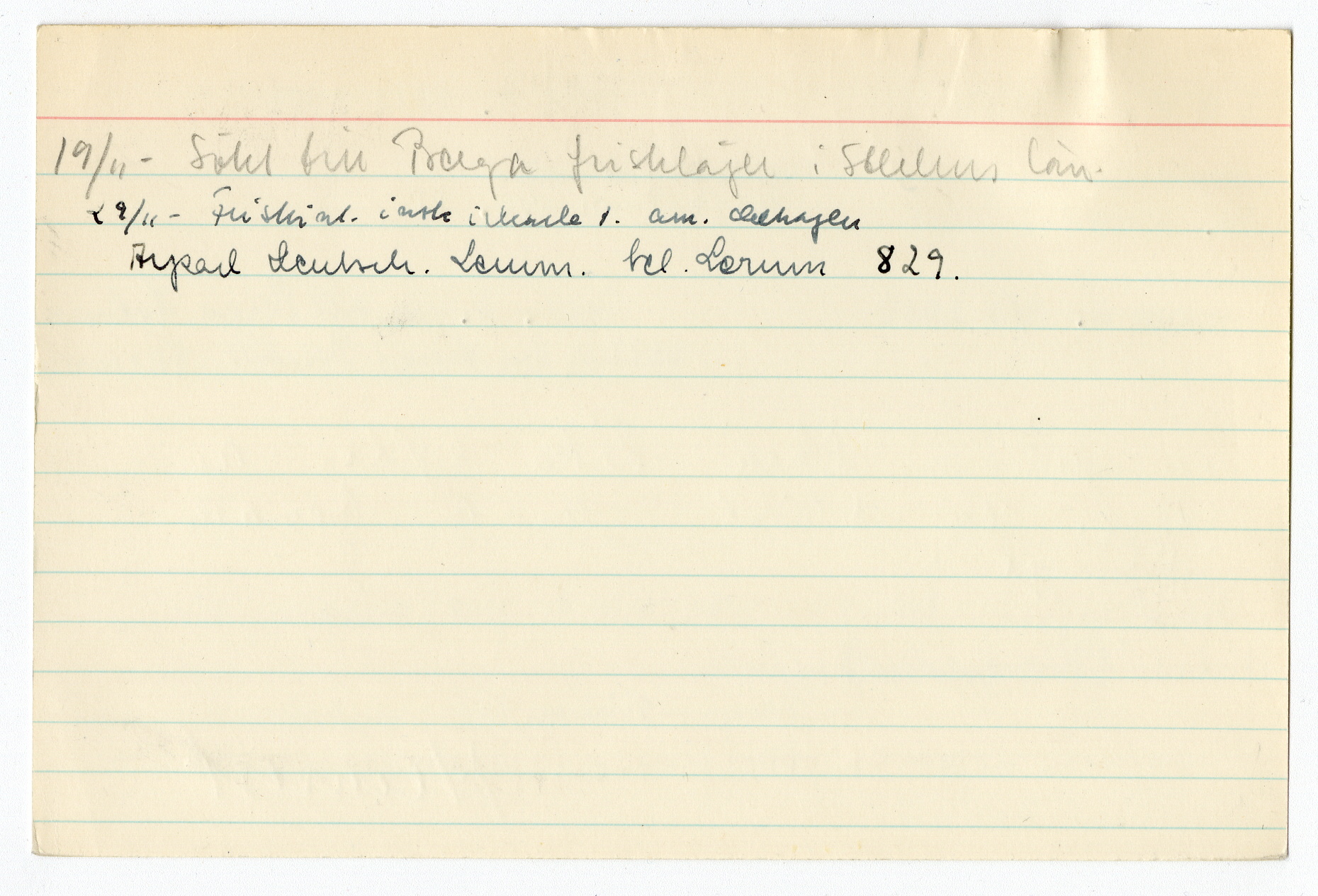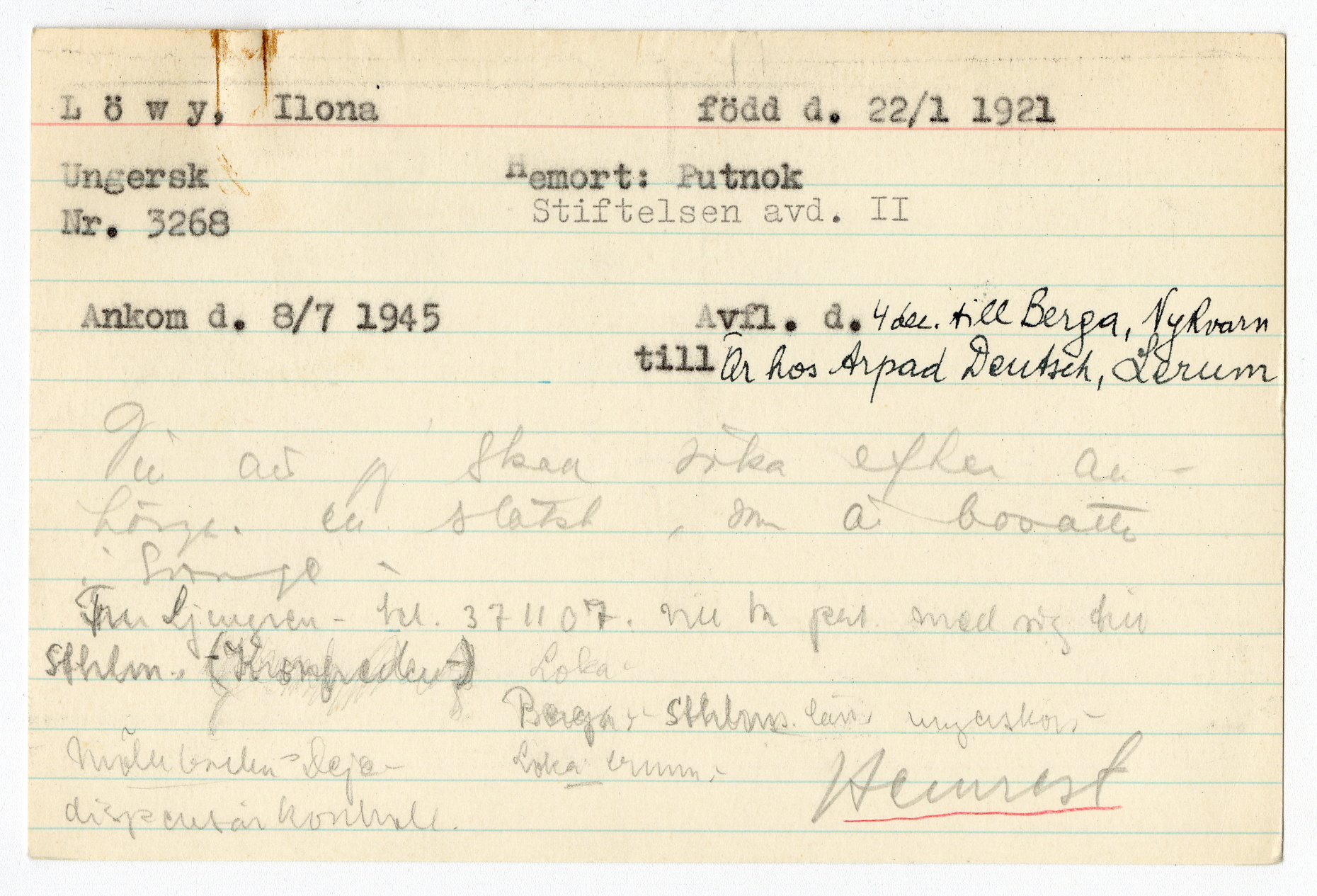 Ett skrivkort med patientuppgifter gällande Ilona Löwy.