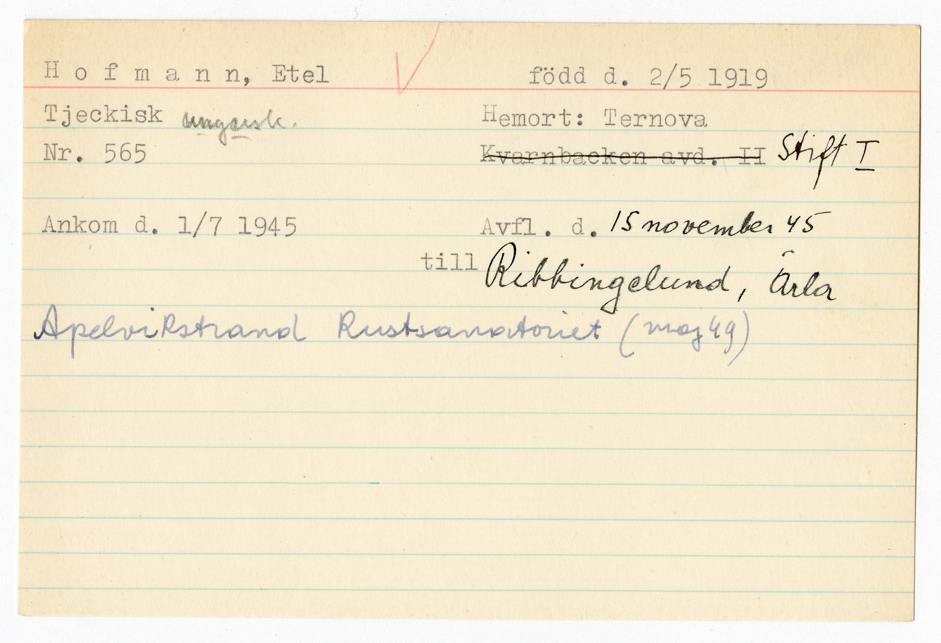 Ett skrivkort med patientuppgifter gällande Etel Hofmann.