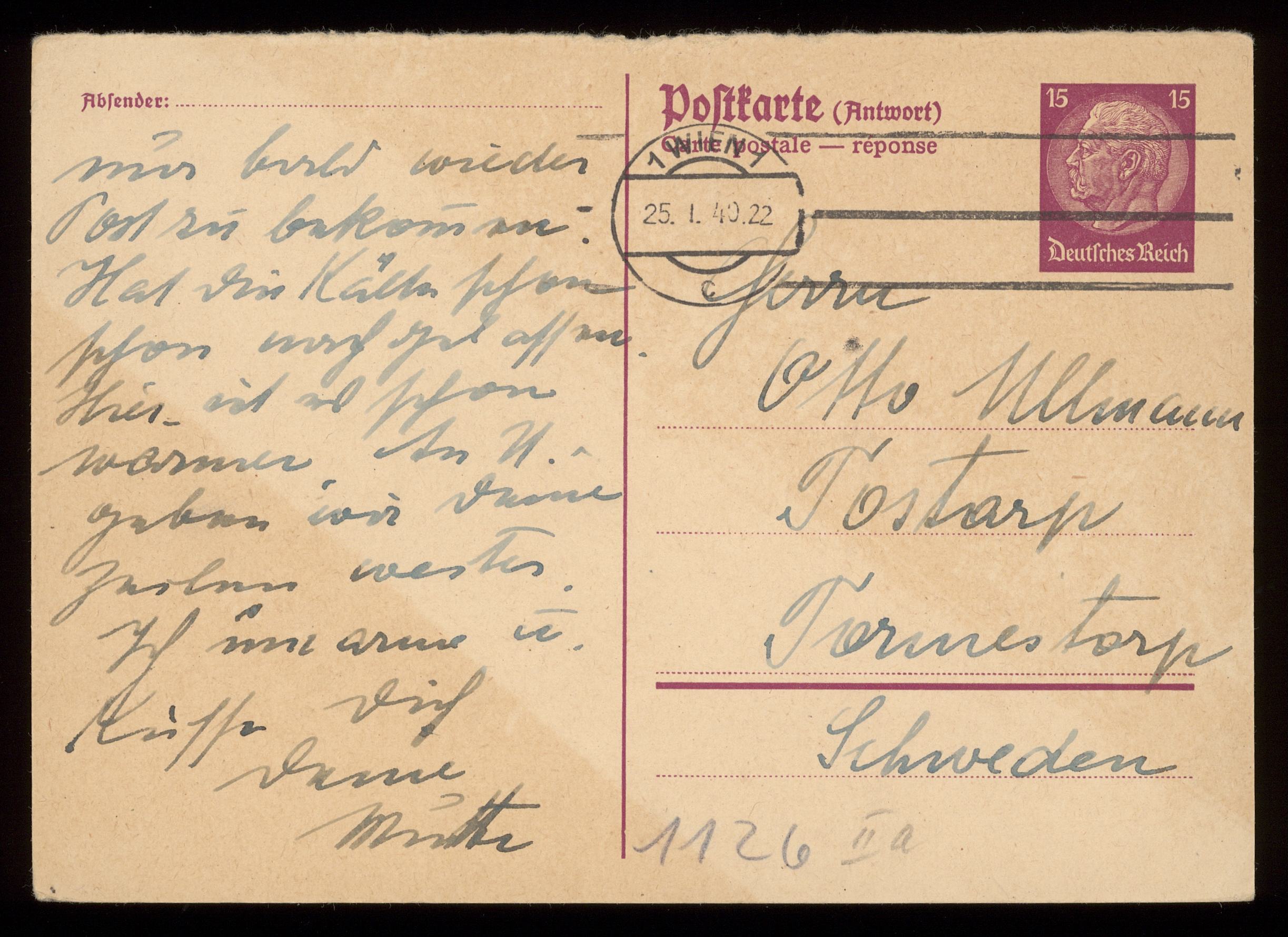Brev till Otto Ullman från föräldrarna Josef och Elise Ullmann daterat 25 januari 1940 Wien.