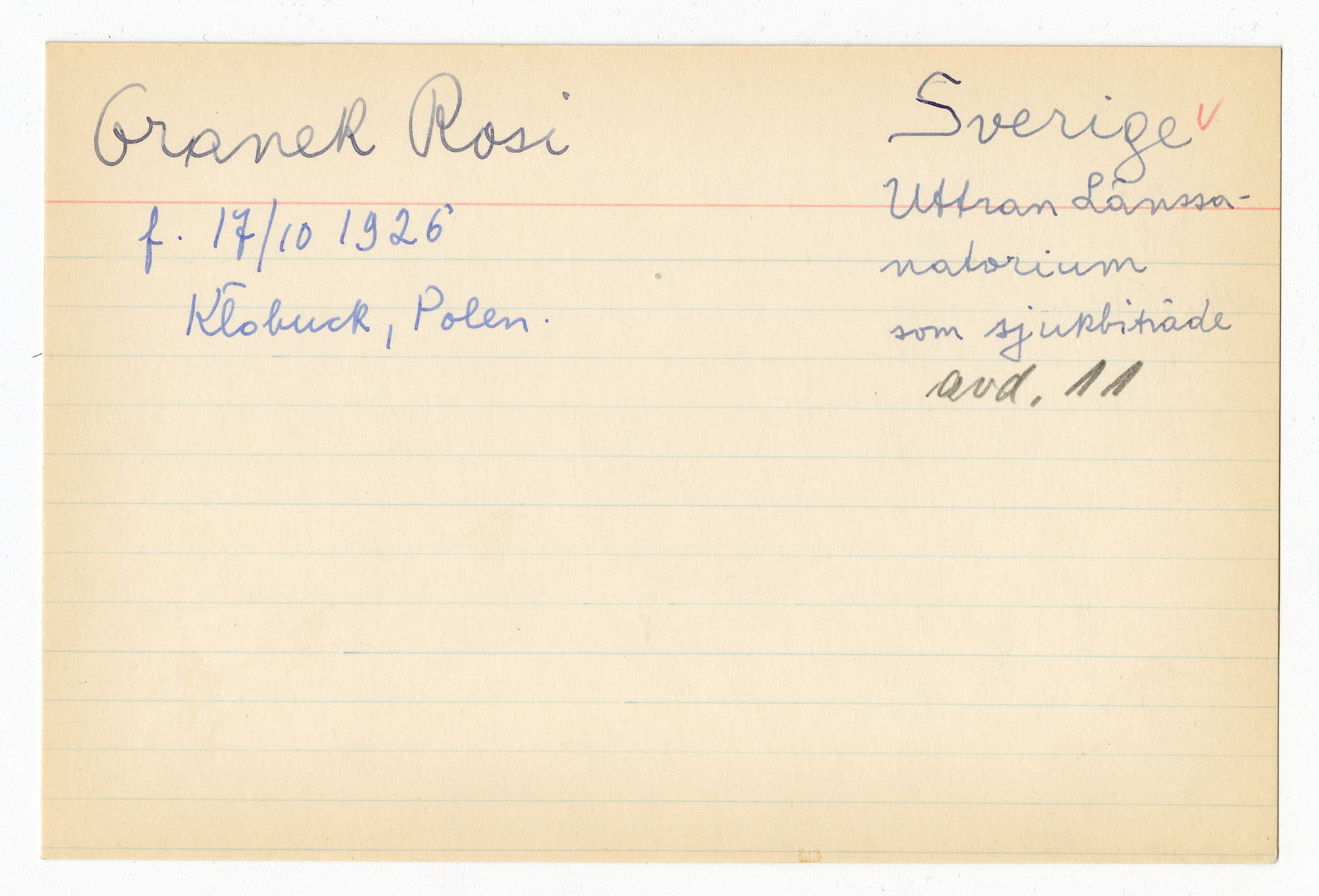 Registerkort Rosi Granek och Debora Soldin