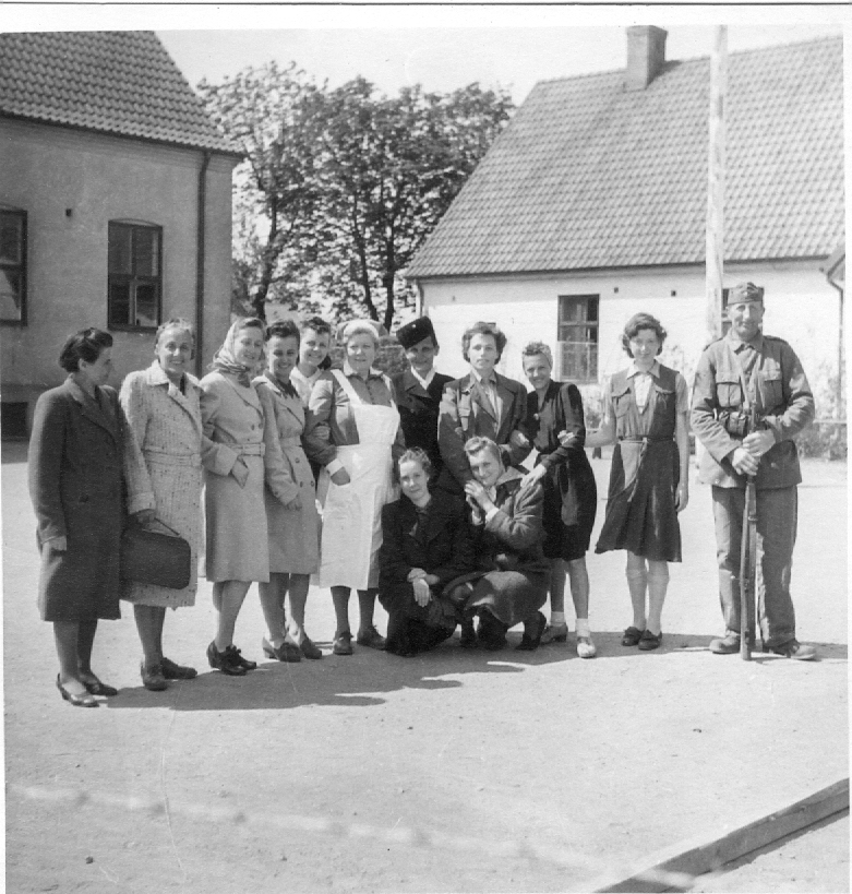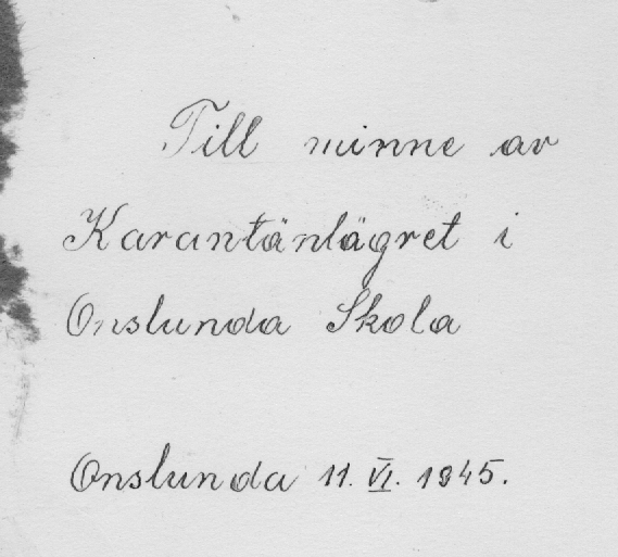 Polsk soldat på besök. På baksidan: "Till minne av karantänlägret i Onslunda skola. Onslunda 11 VI 1945"