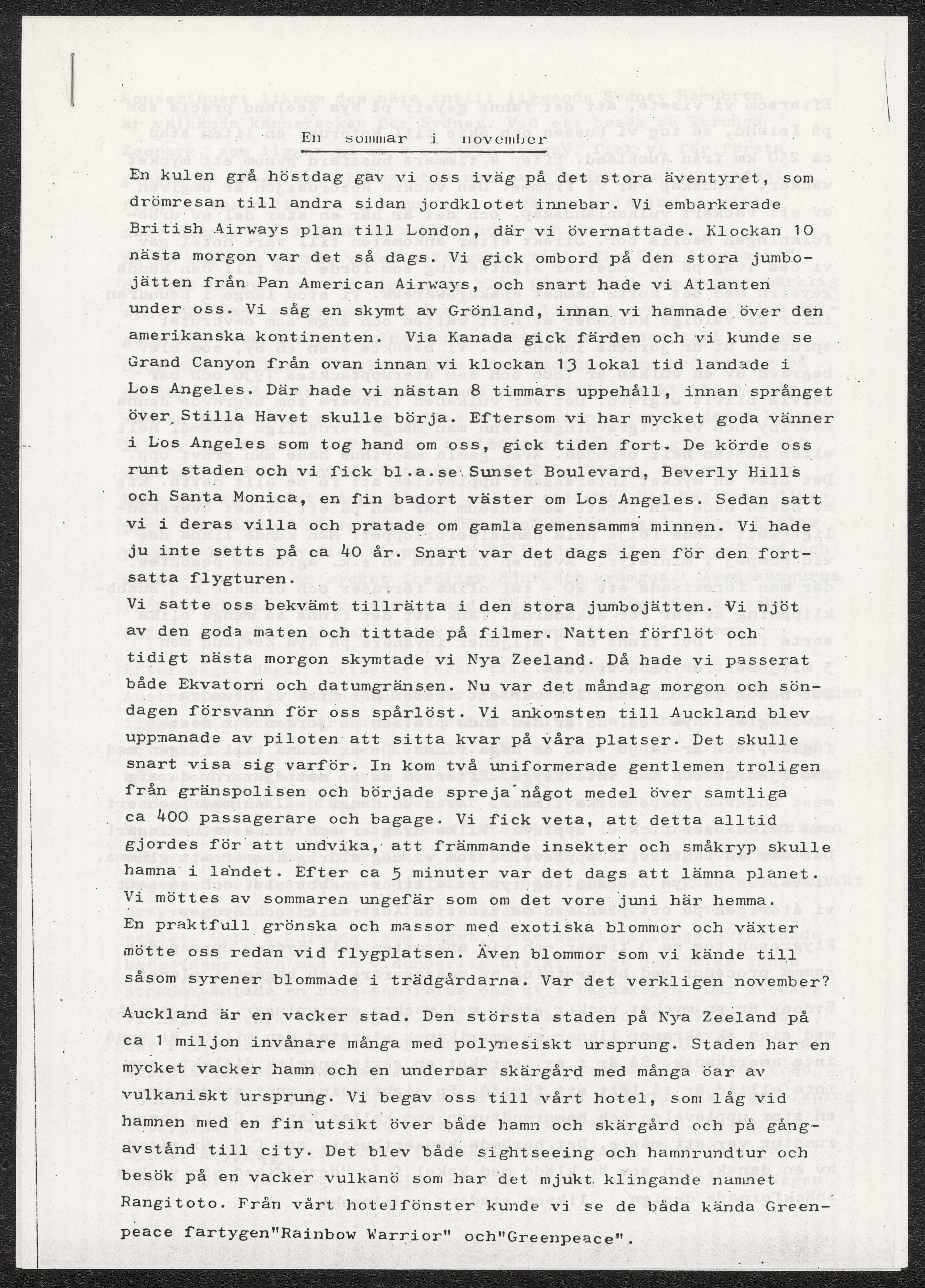 Reseberättelse "En sommar i november"