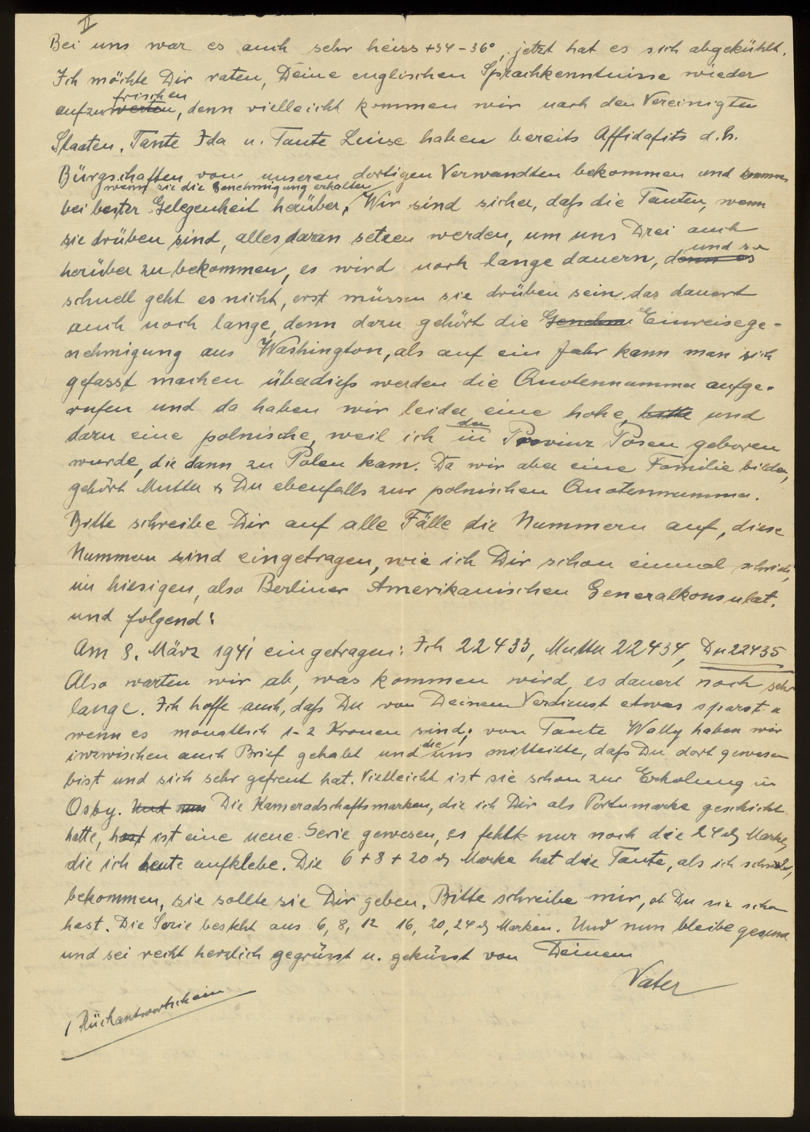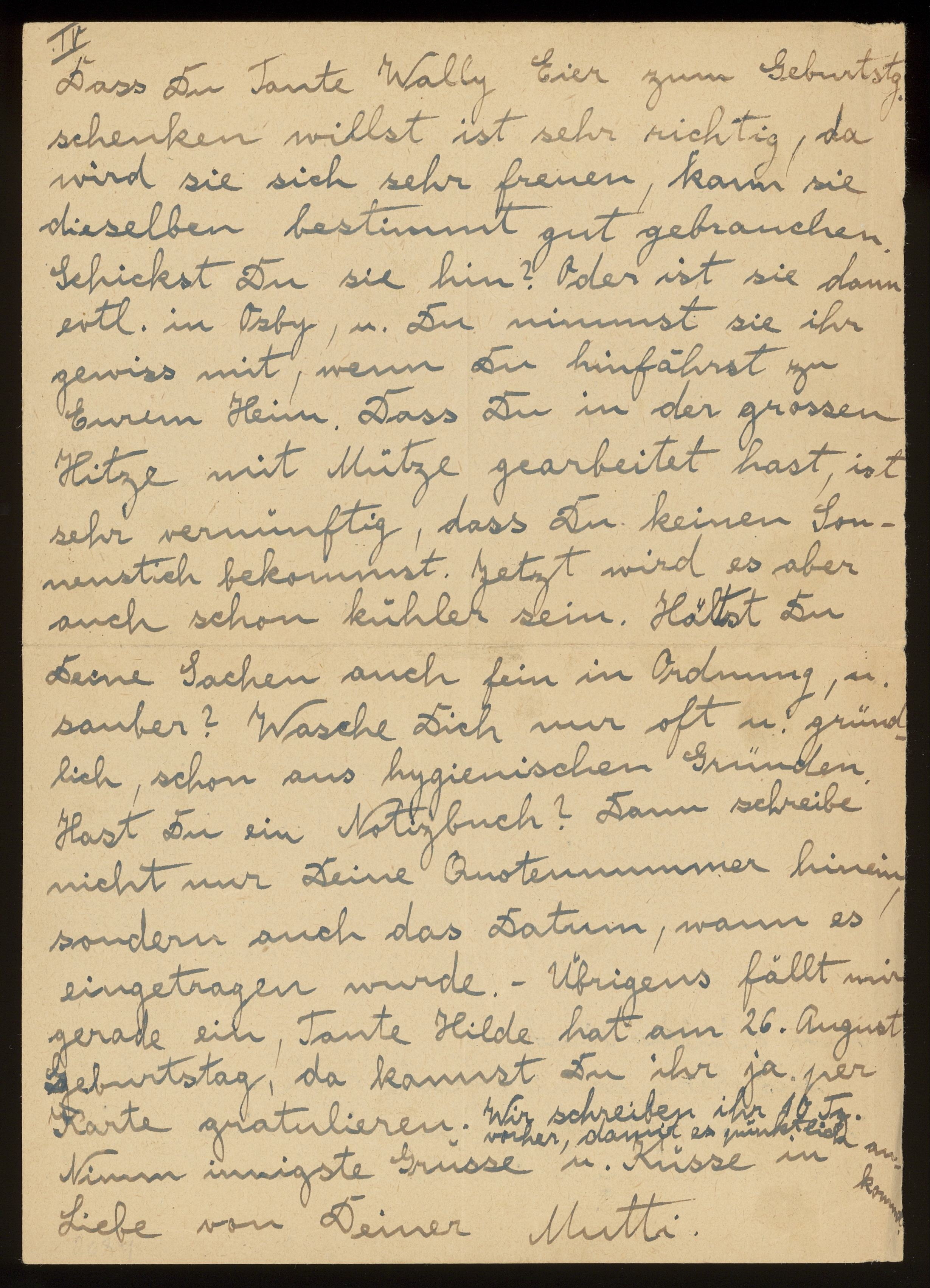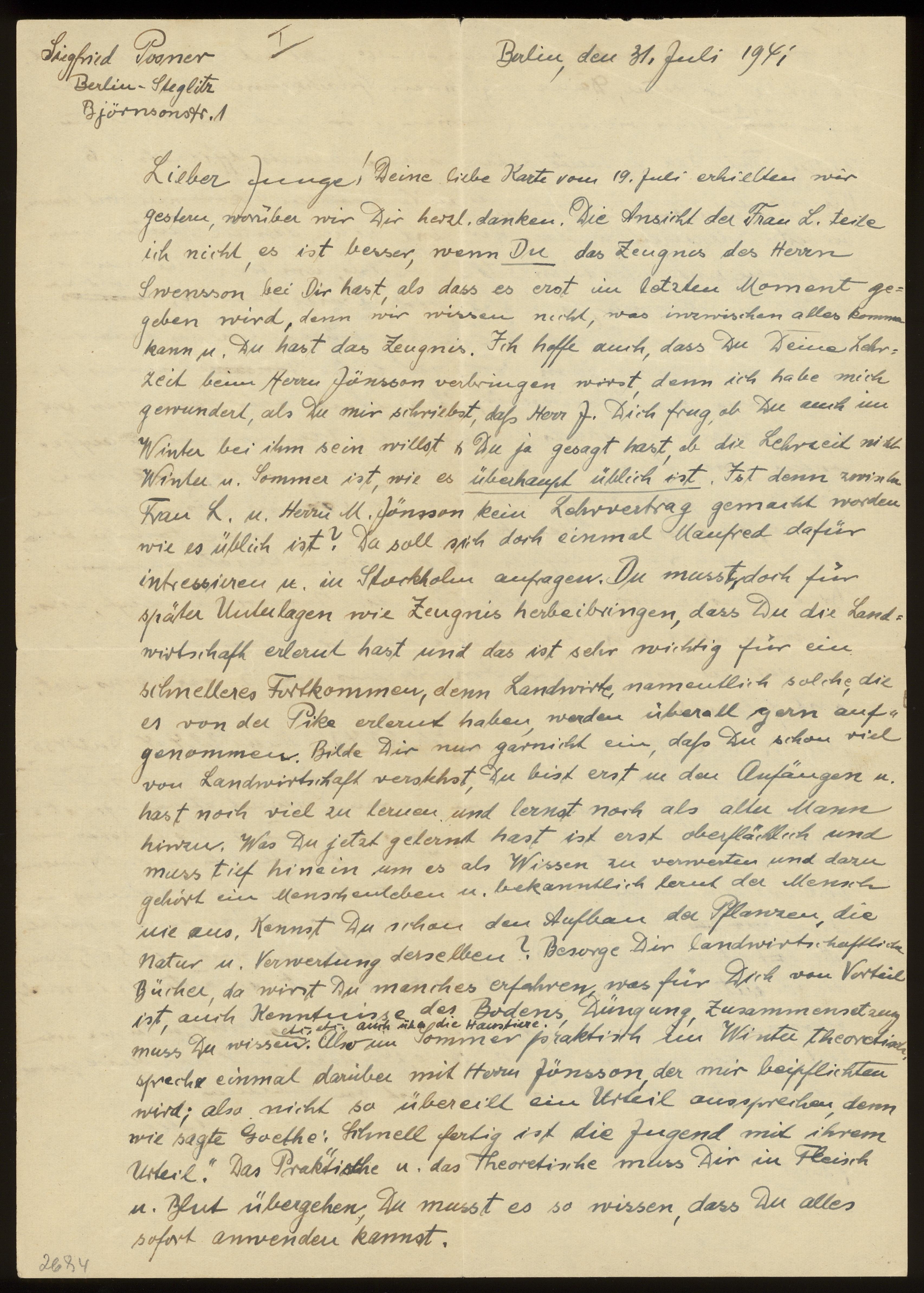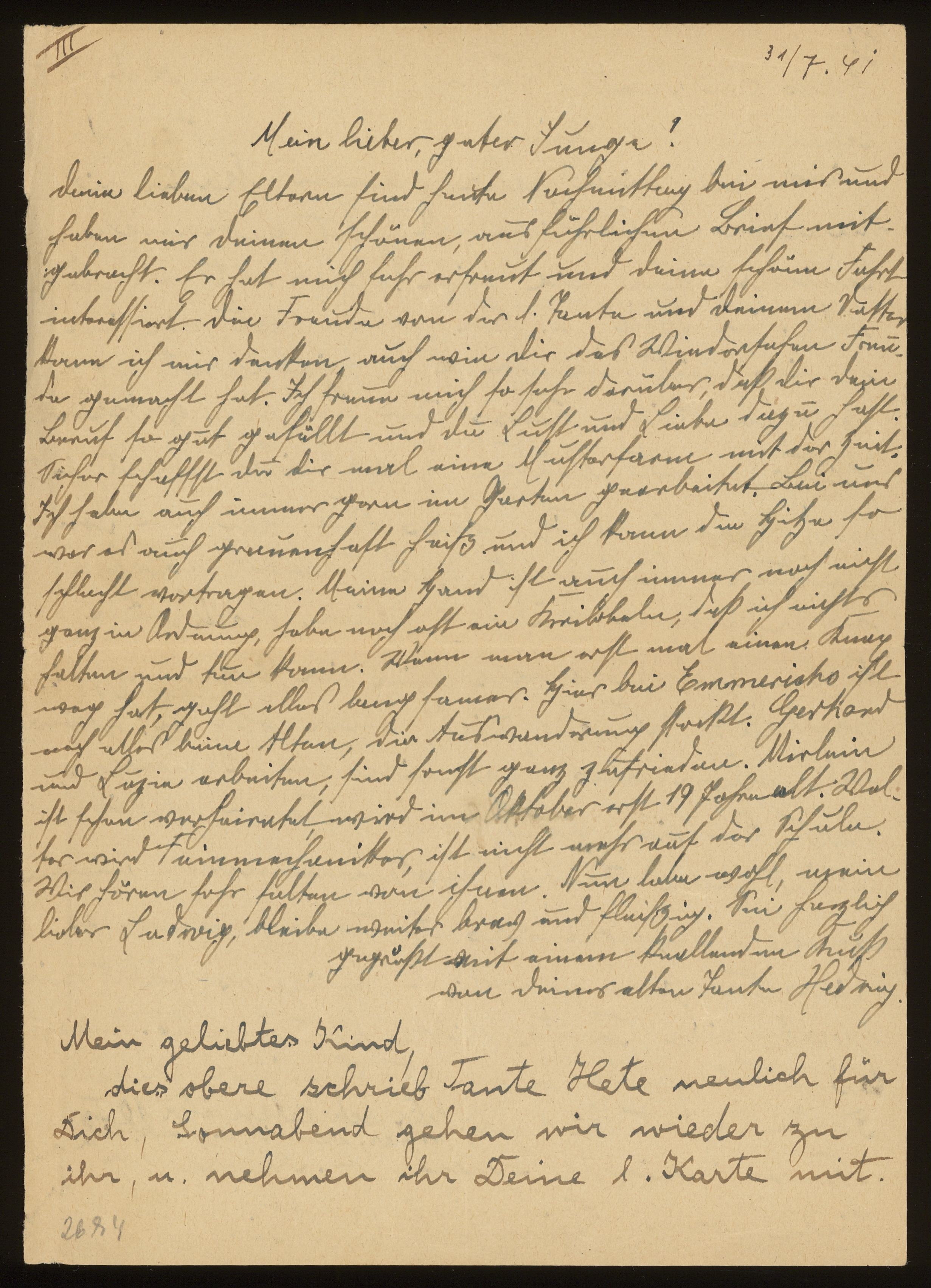Brev från föräldrarna Anna och Siegfried Posner och gammelfaster Hedwig "Hete" till Ludwig Posner daterat 31 juli 1941.