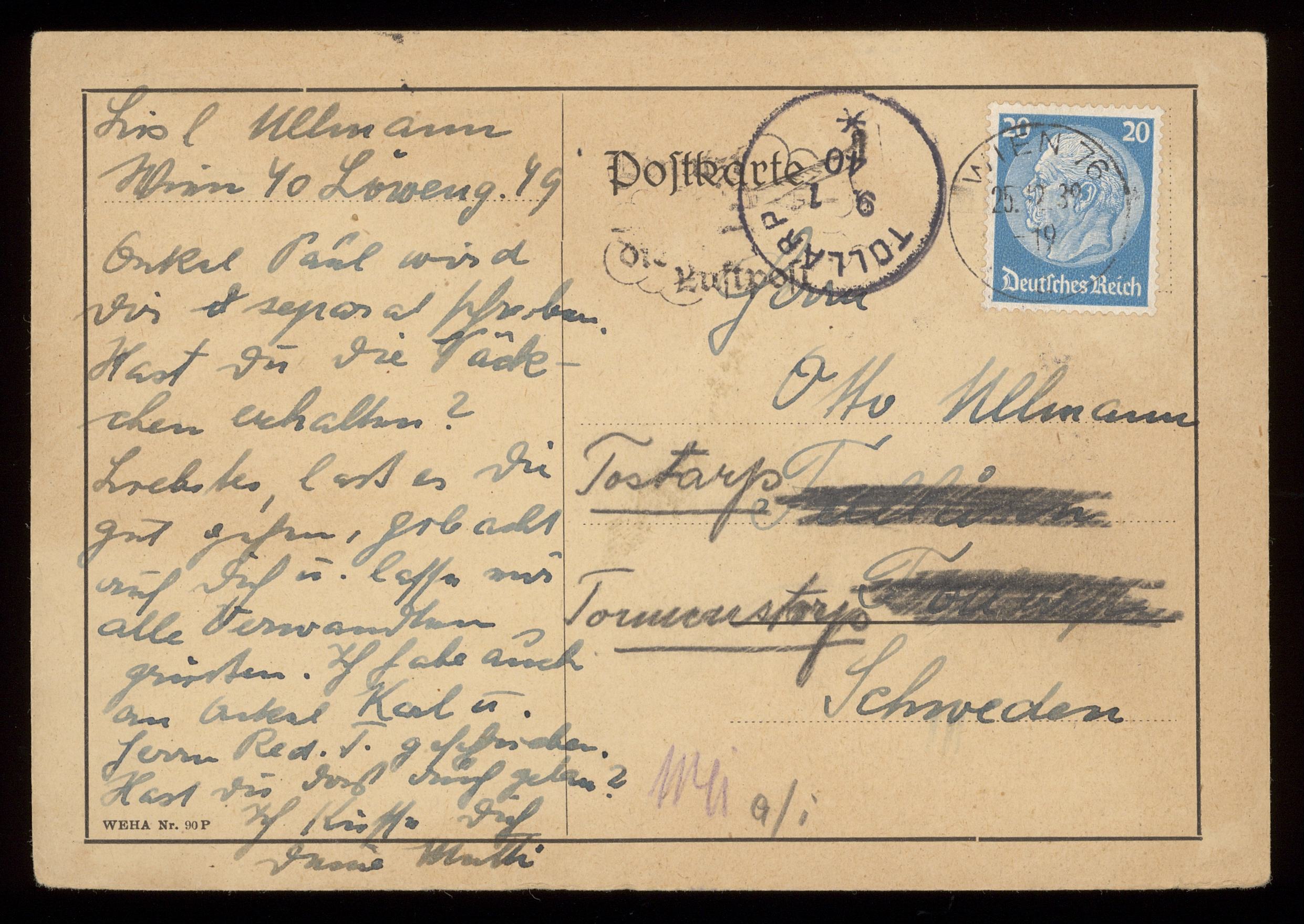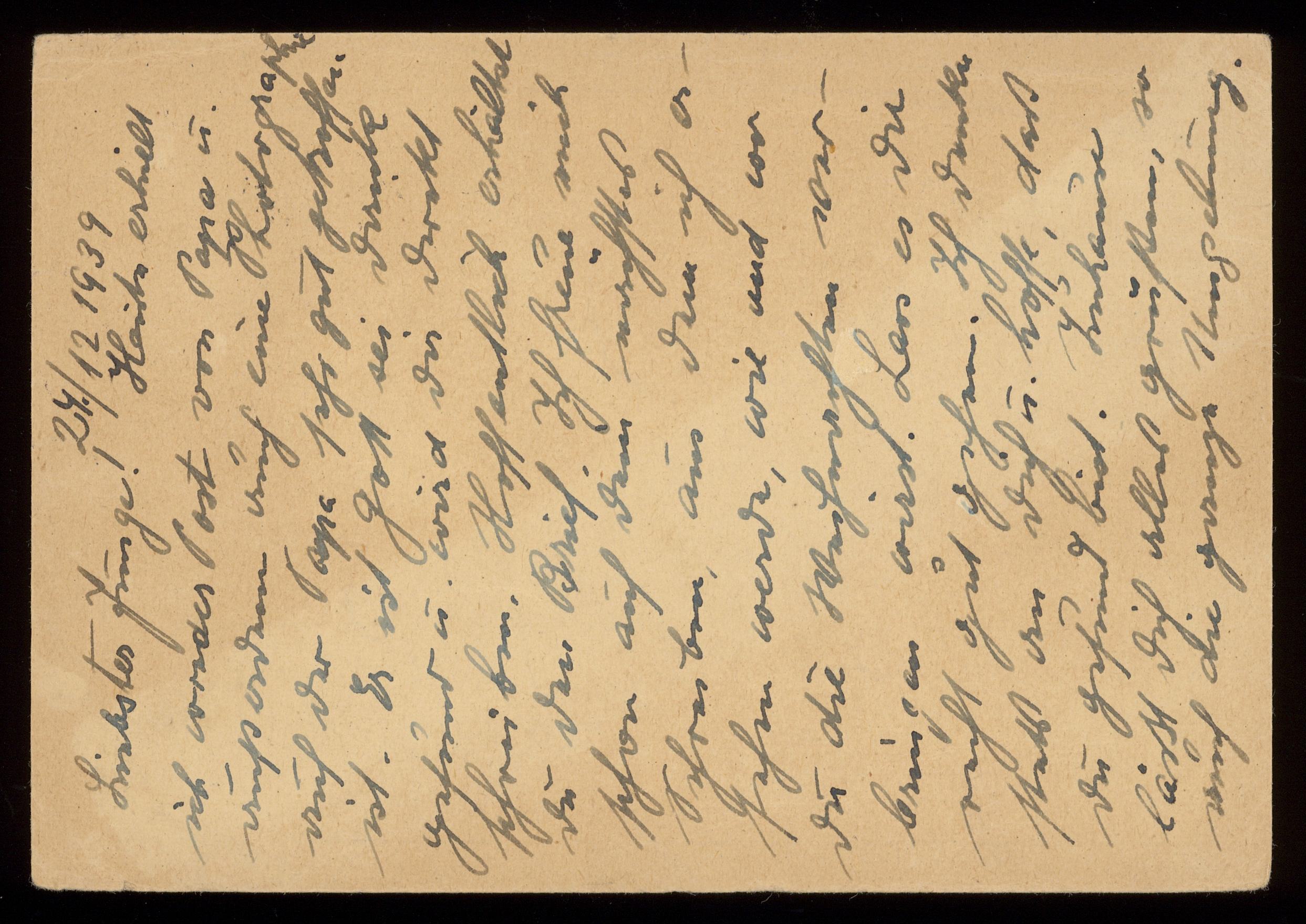 Brev till Otto Ullman från föräldrarna Josef och Elise Ullmann daterat 24 december 1939 Wien.