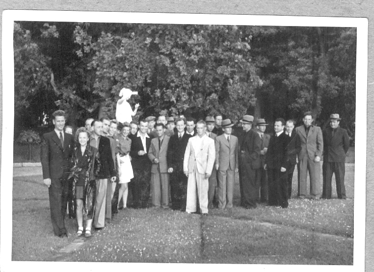 Gruppfotografi. Enligt givaren (Józefs dotter) skulle detta kunna vara de polska marinsoldaterna och lokalbor från Mariefred.