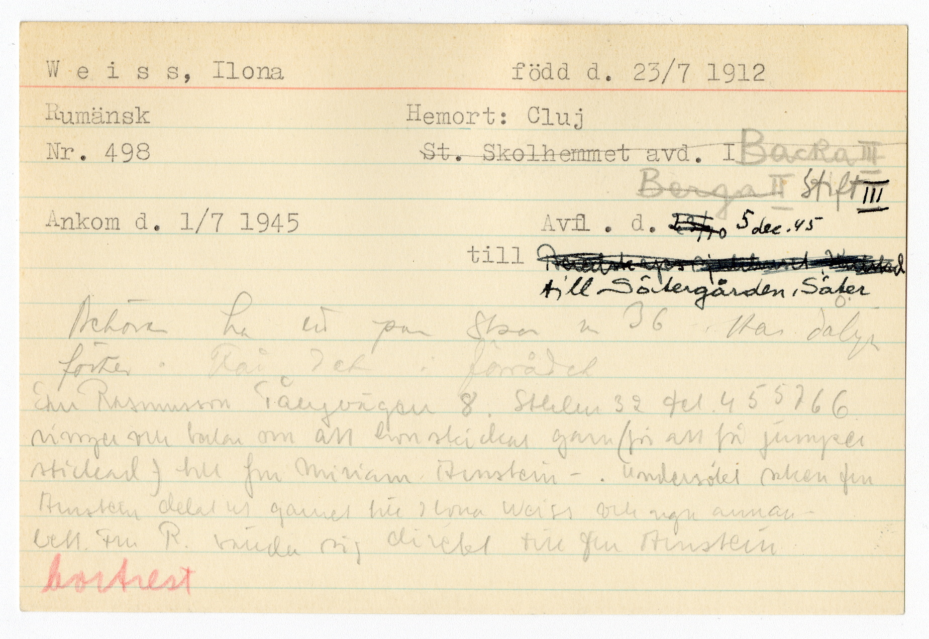 Ett skrivkort med patientuppgifter gällande Ilona Weiss.