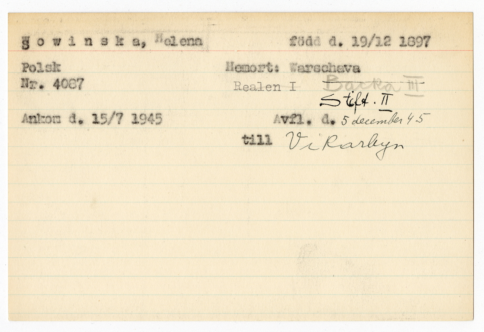 Ett skrivkort med patientuppgifter gällande Helena Sowinska.