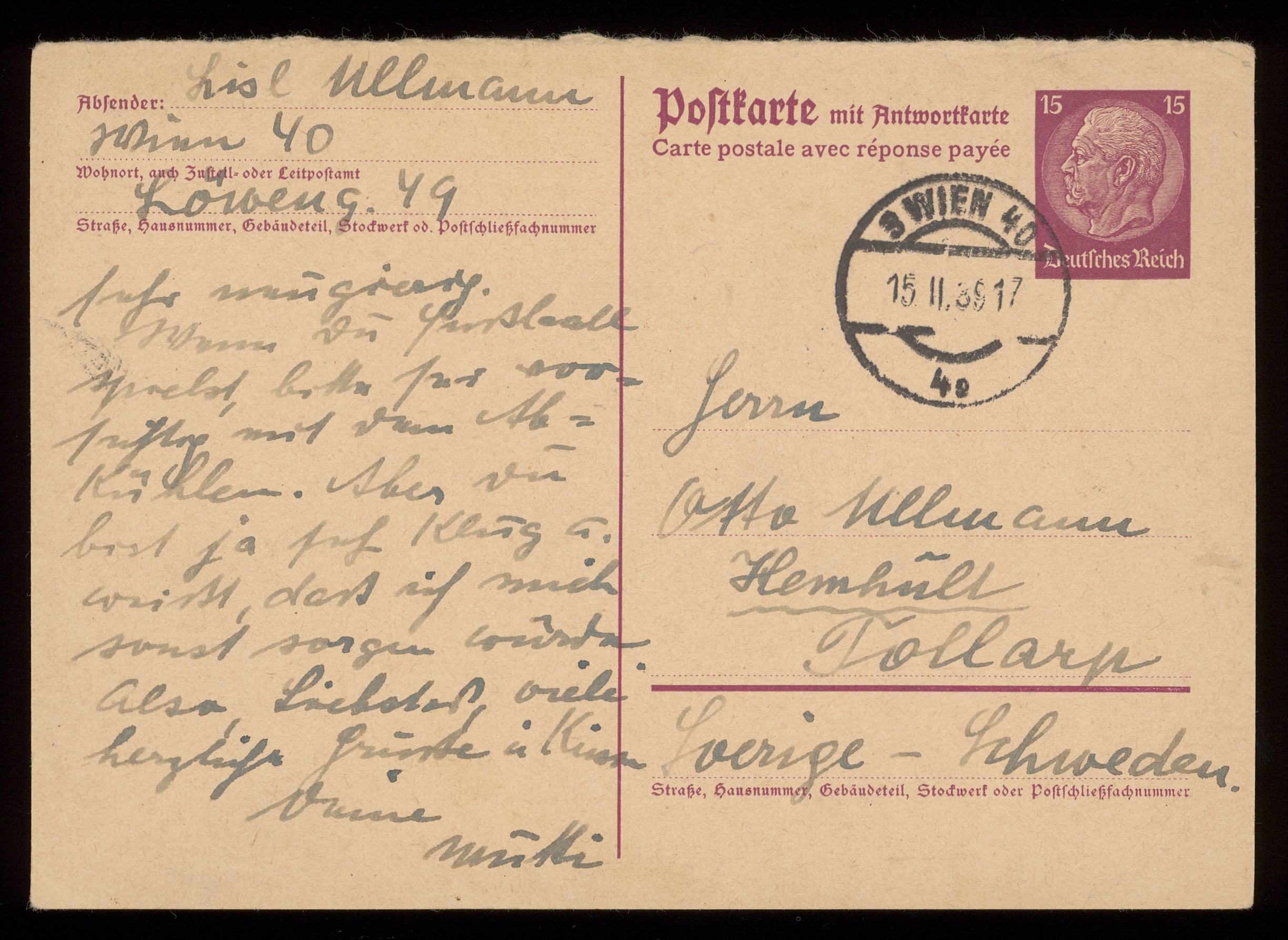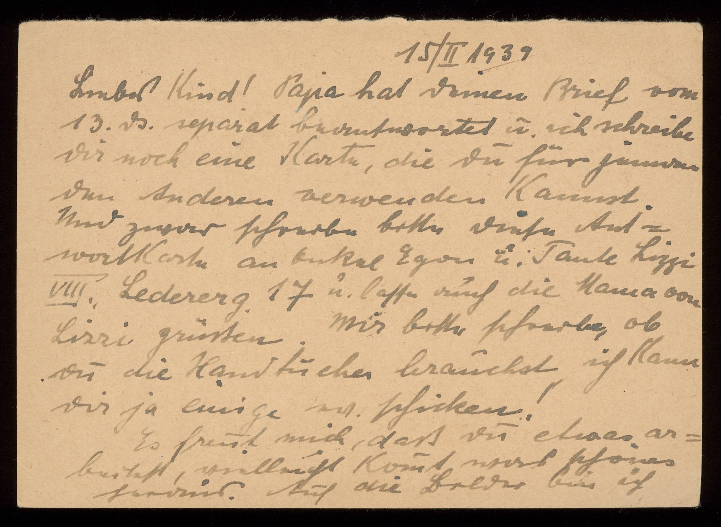 Brev till Otto Ullman från föräldrarna Josef och Elise Ullmann daterat 15 februari 1939 Wien.
