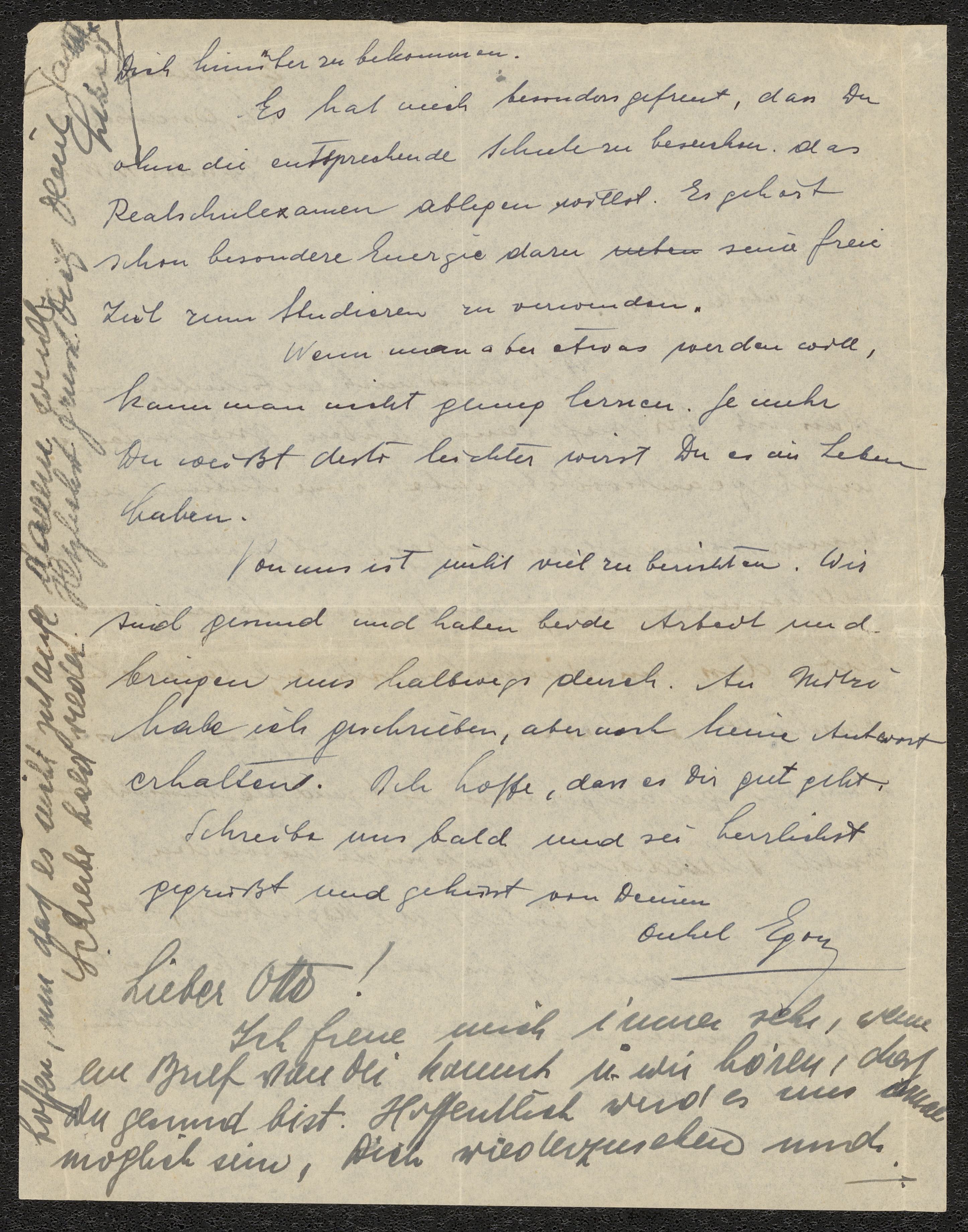 Brev till Otto Ullman från farbror Egon Ullmann och faster Alice "Lizzy" Ullmann odaterat London.