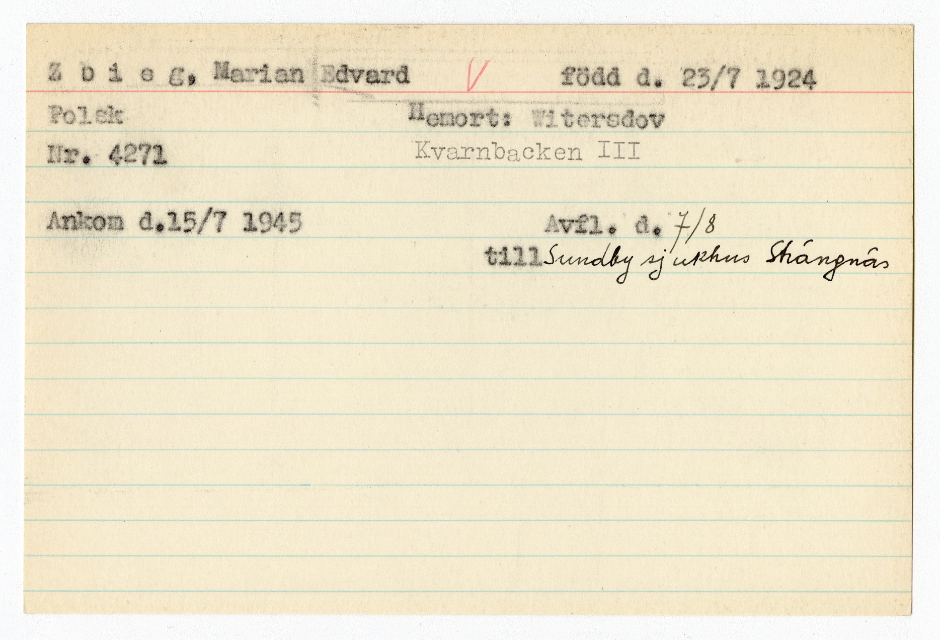 Registerkort Marian och Edvard Zbieg