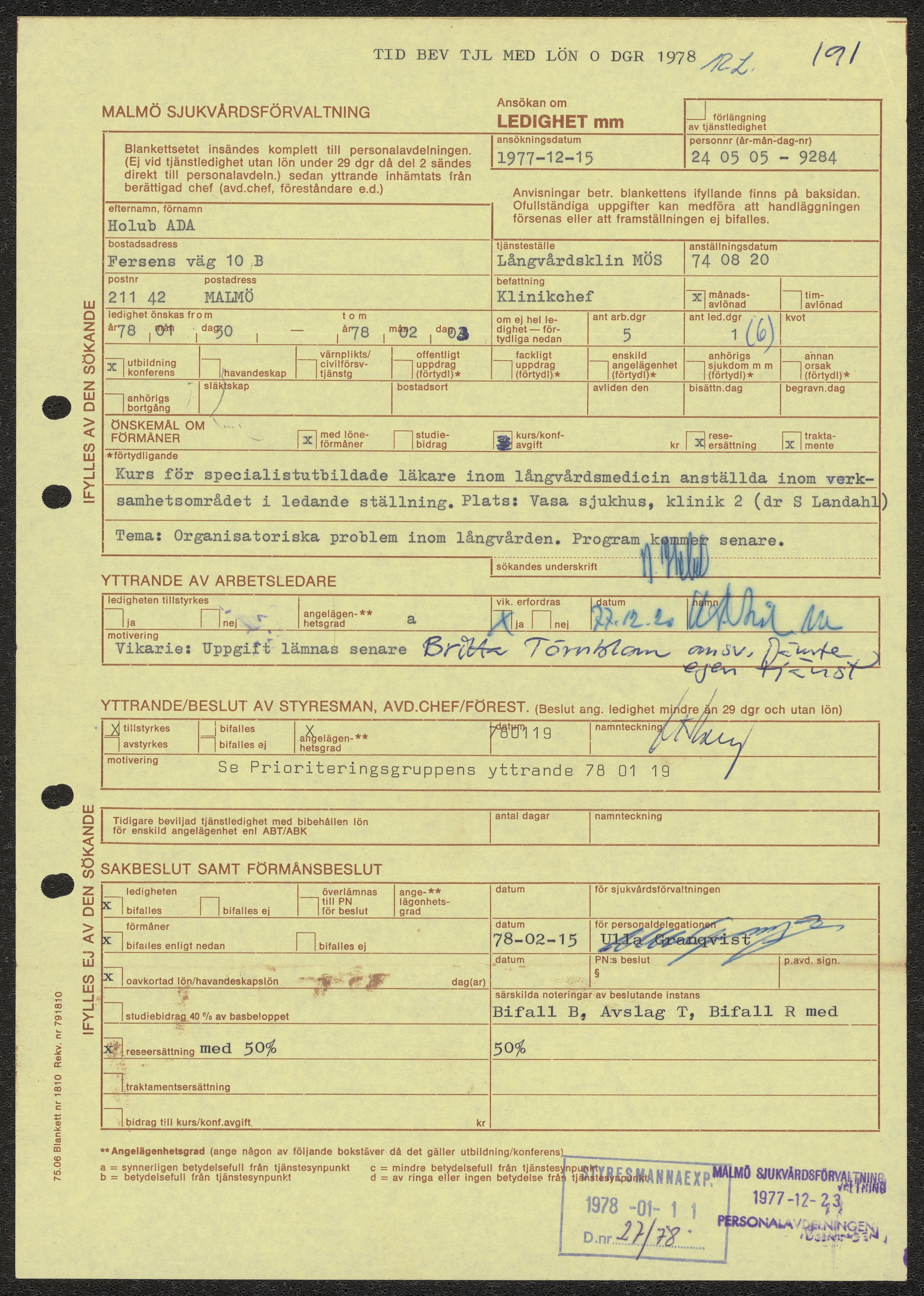 Ansökan om ledighet m.m. 1978