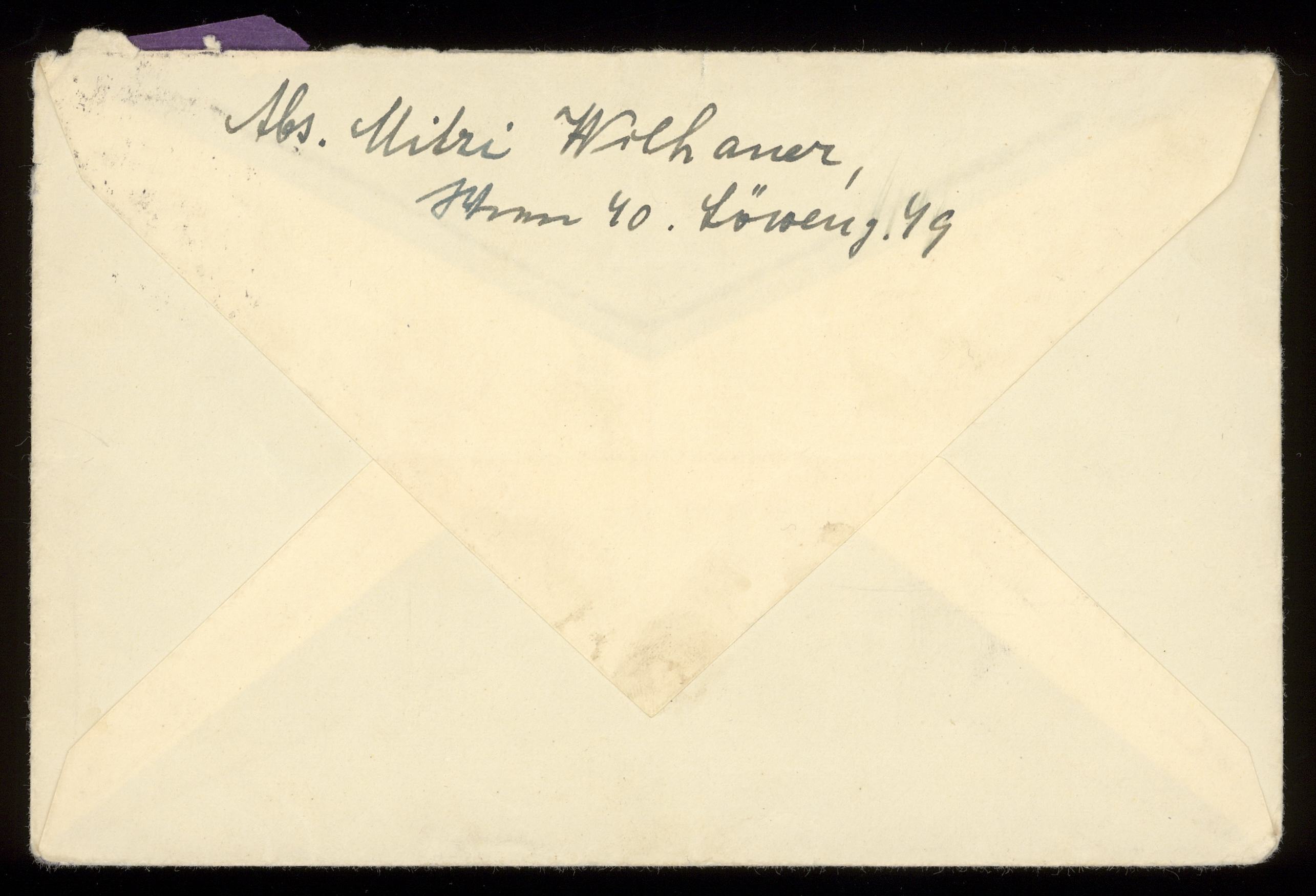 Brev till Otto Ullman med en torkad växt från familjens hembiträde/barnflicka Marie "Mizzi/Mitzi" Willhaner daterat 22 februari 1939 Wien.