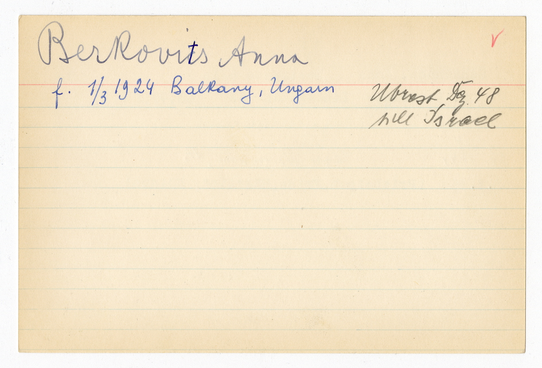 Registerkort Anna Berkovits och Anna Schachnow