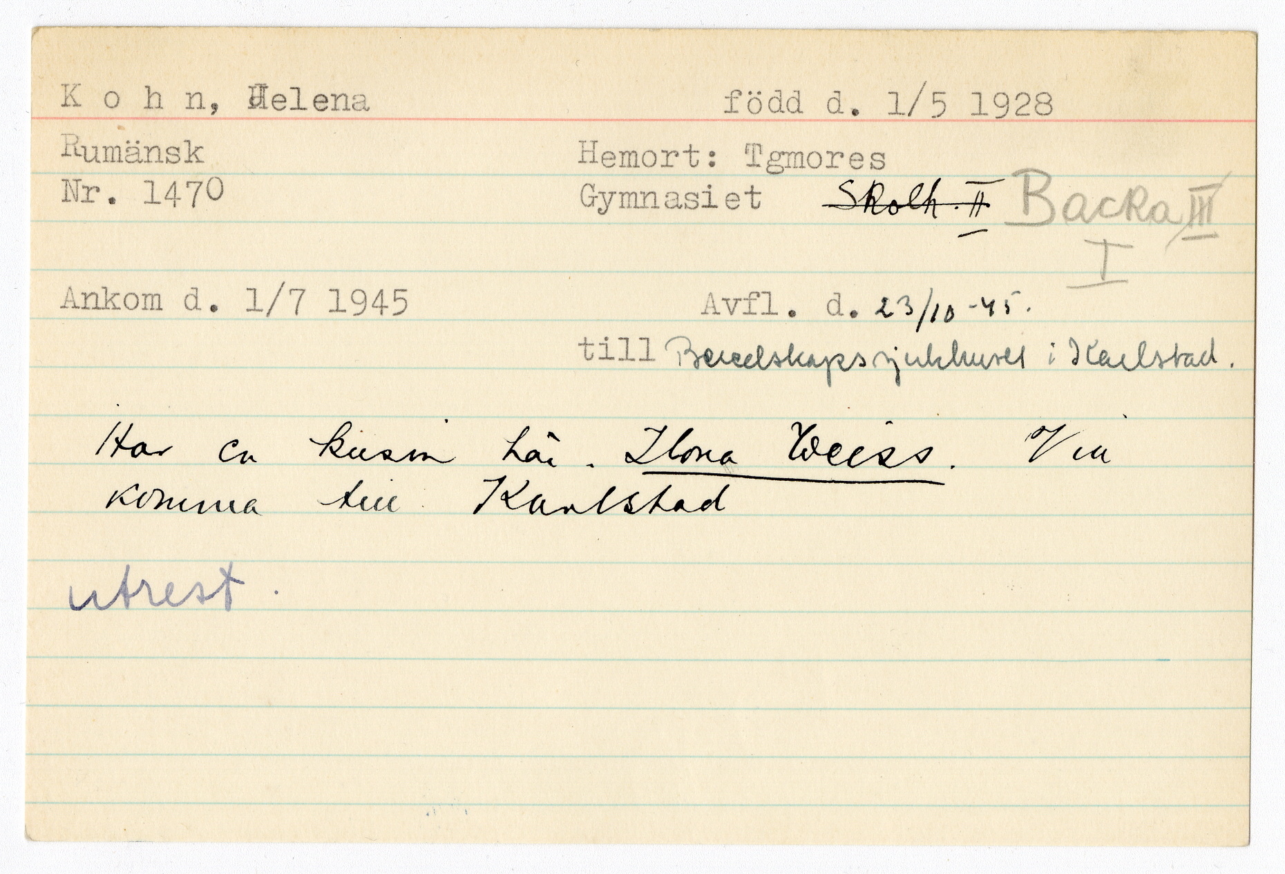 Upphov: Beredskapssjukhuset i Sigtuna. Media: Forum för levande historia. Sveriges museum om Förintelsen/SHM, (PDM) Upphovsrätten till detta verk har gått ut och är därmed fritt att använda på alla sätt. Ange gärna upphovsperson om denne är känd.
