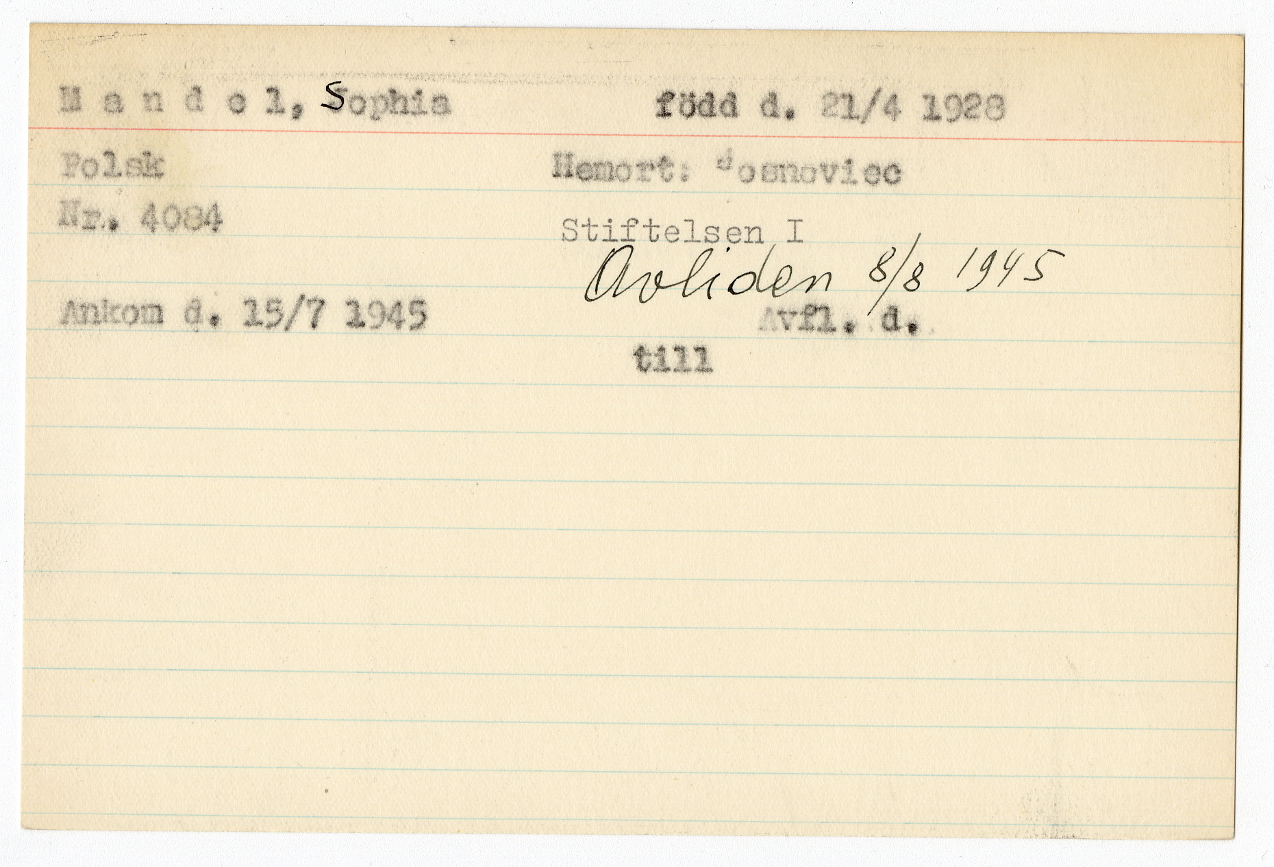 Registerkort Sophia Mandel
