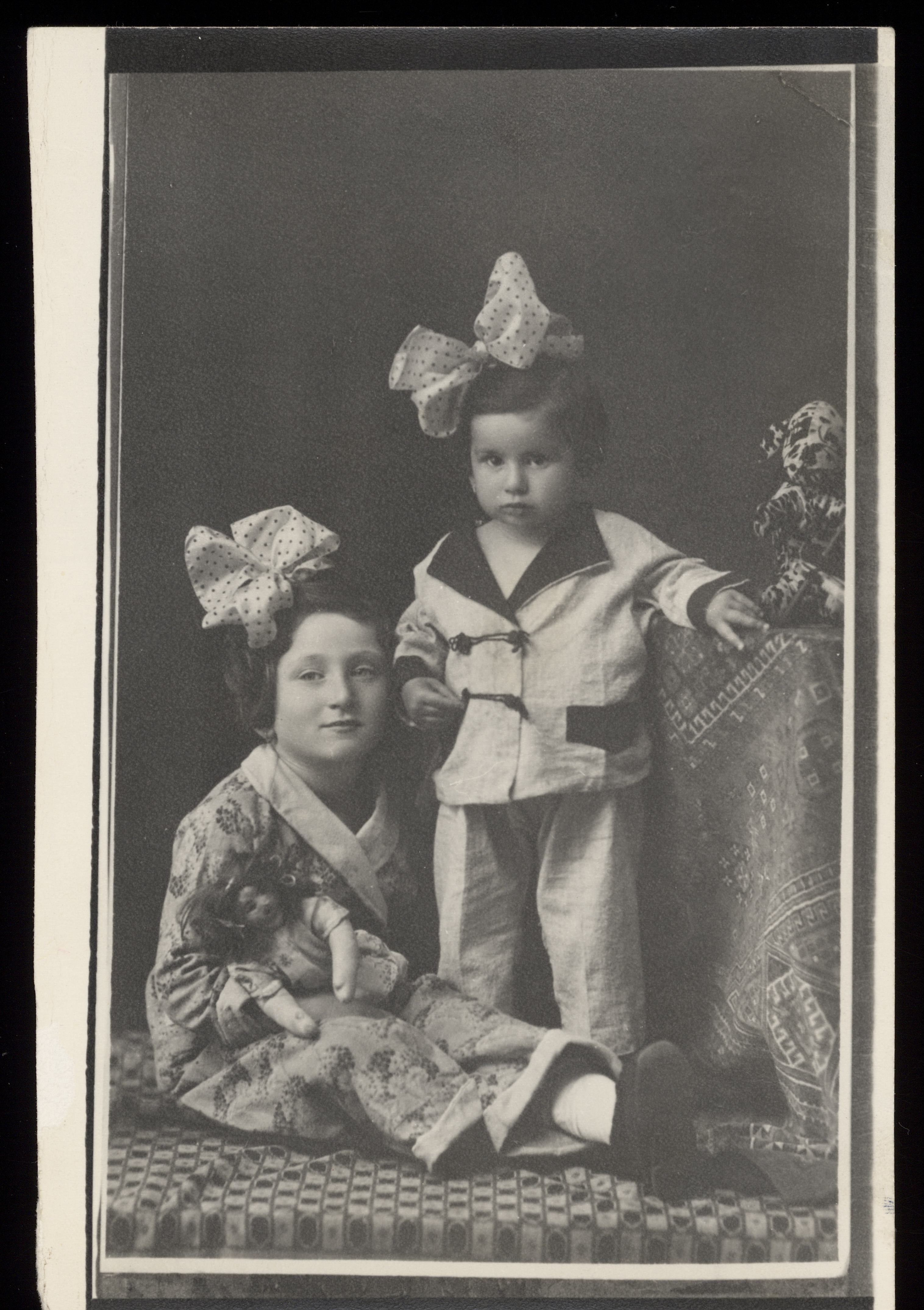 Svartvitt fotografi på Hedi (Fried) och Livia (Fränkel) Szmuk.