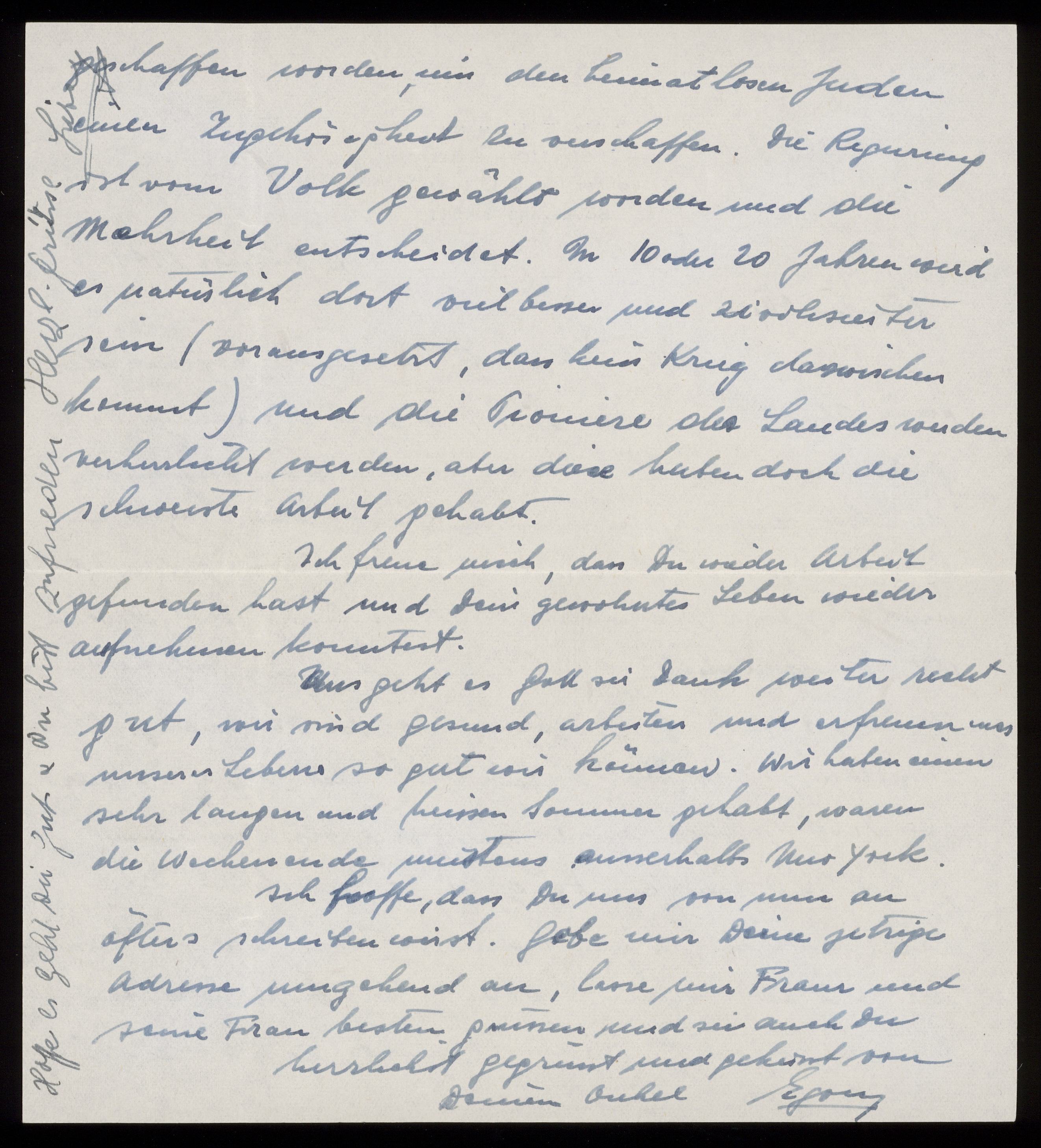 Brev till Otto Ullman från farbror Egon Ullmann och faster Alice "Lizzy" Ullmann daterat 15 november 1949 New York.