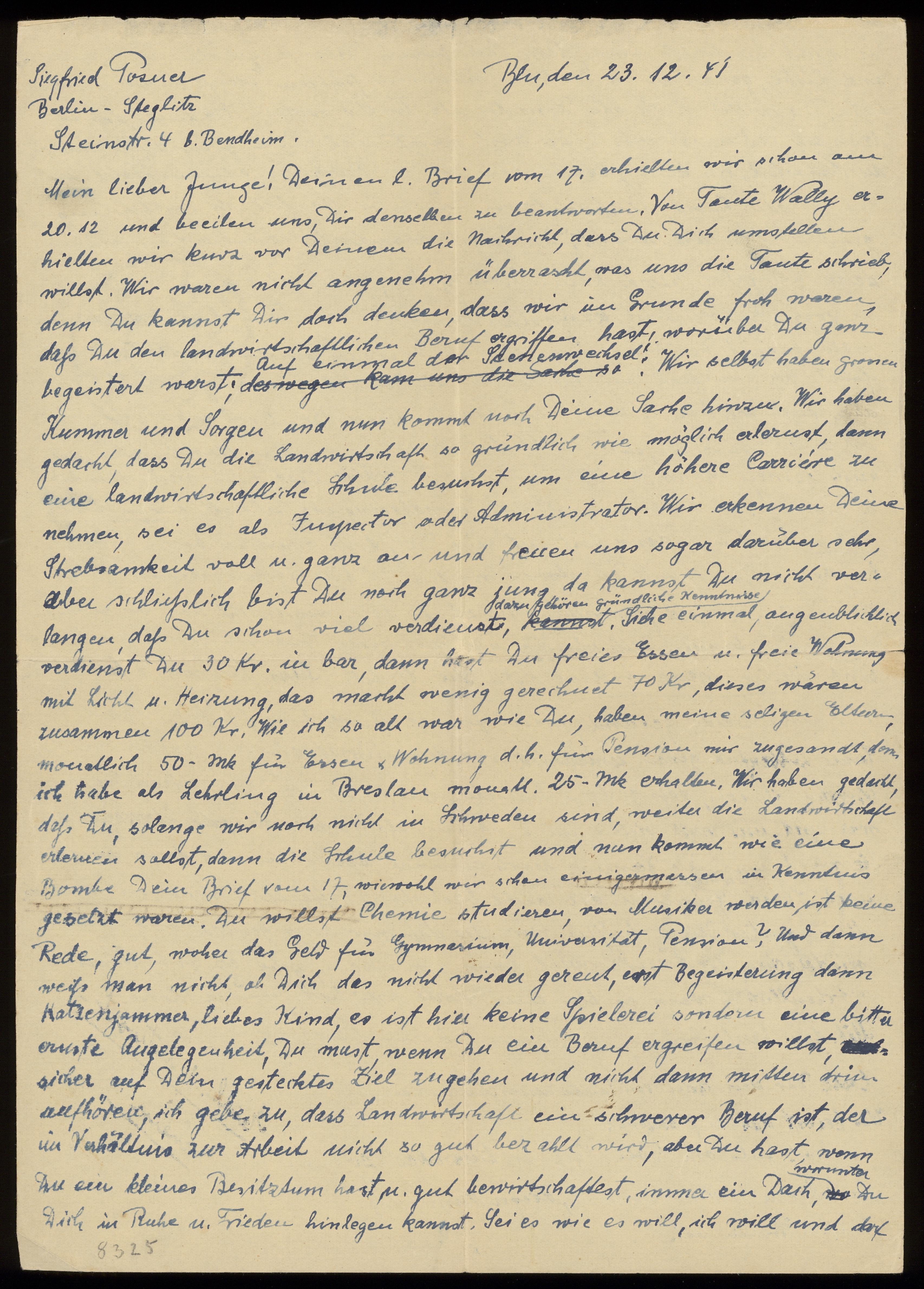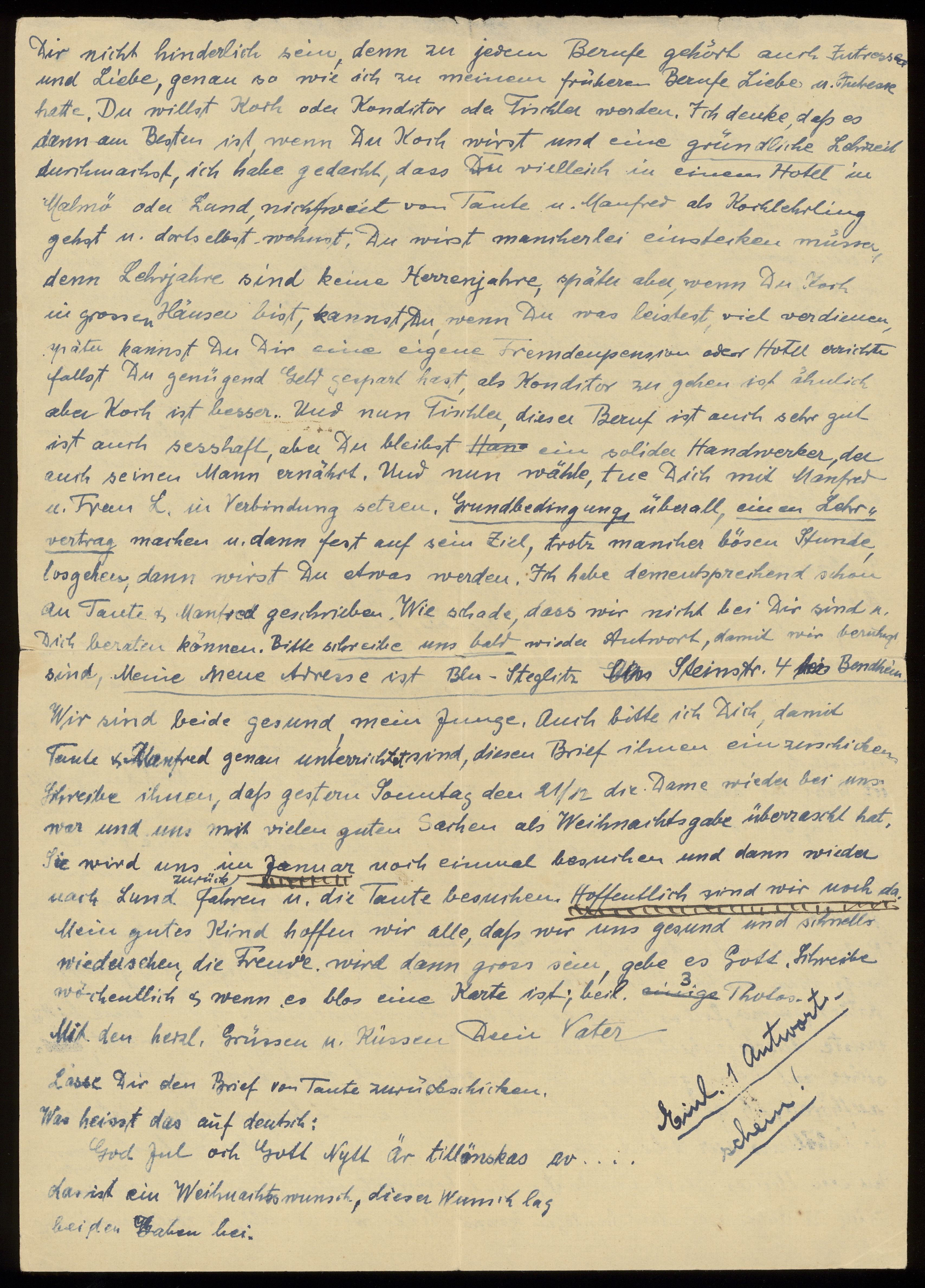 Brev från föräldrarna Anna och Siegfried Posner till sonen Ludwig Posner daterat 12 december 1941.