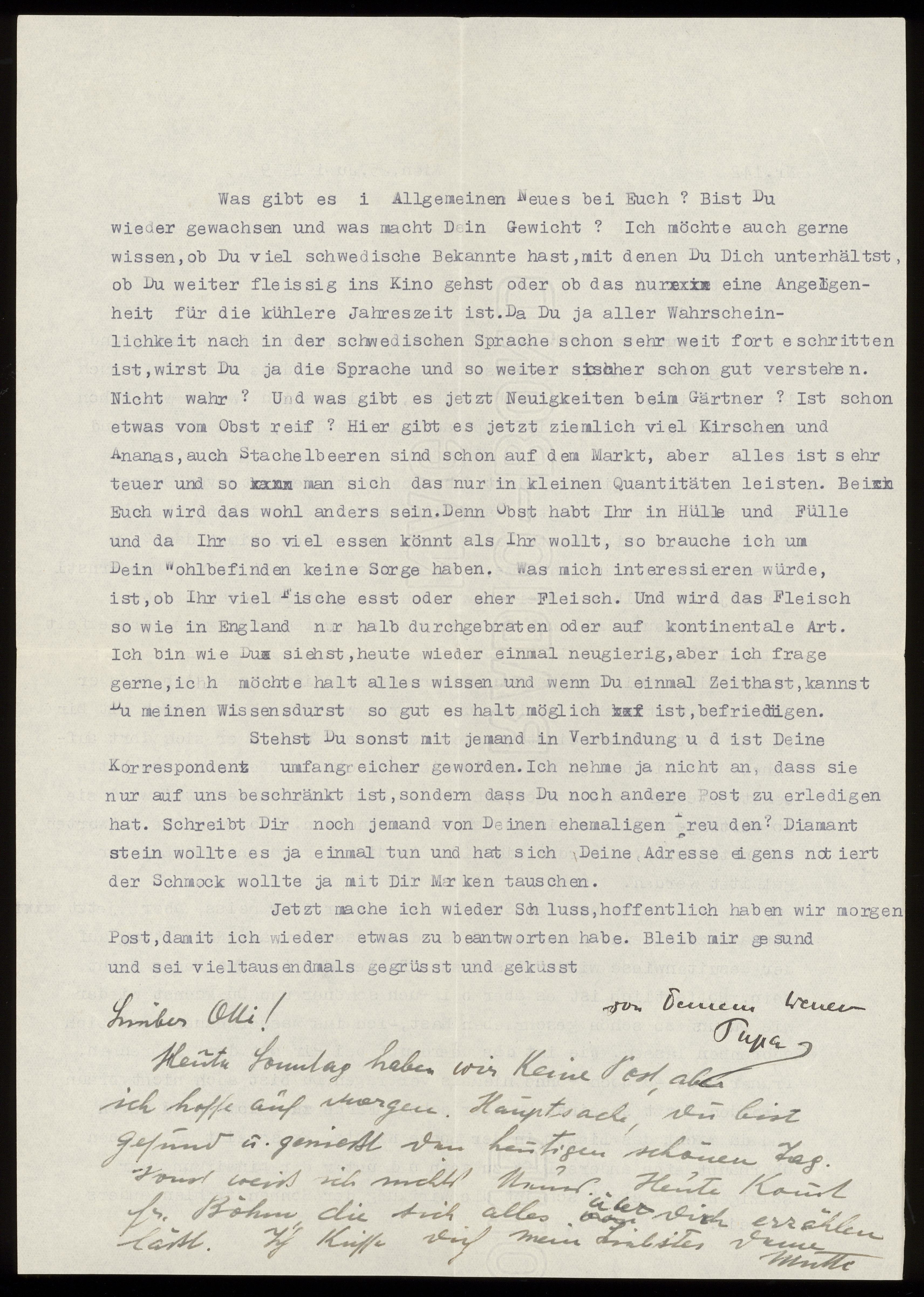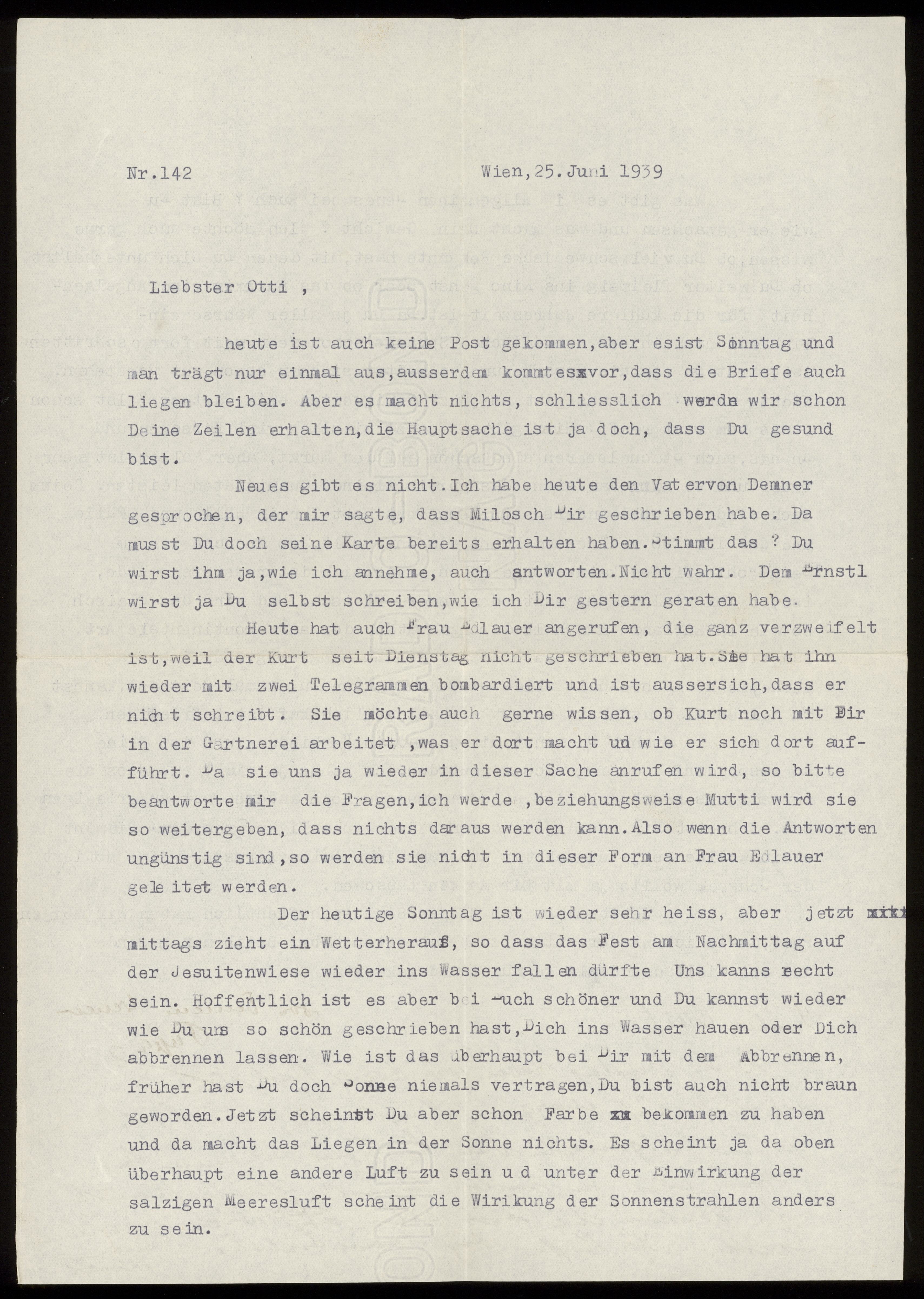 Maskinskrivet brev till Otto Ullman från föräldrarna Josef och Elise Ullmann daterat 25 juni 1939 Wien.