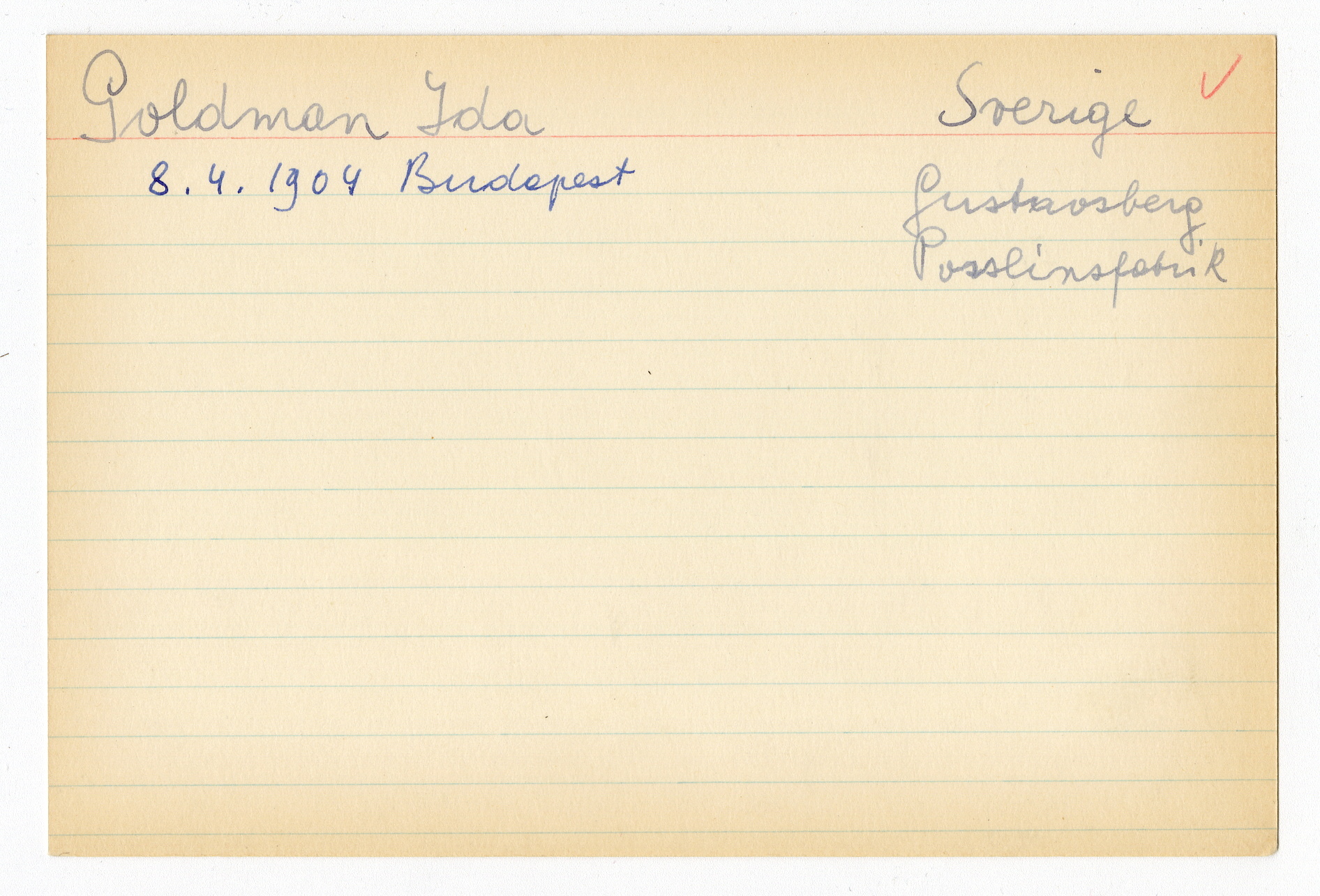 Registerkort Ida Goldman och Irma Stern