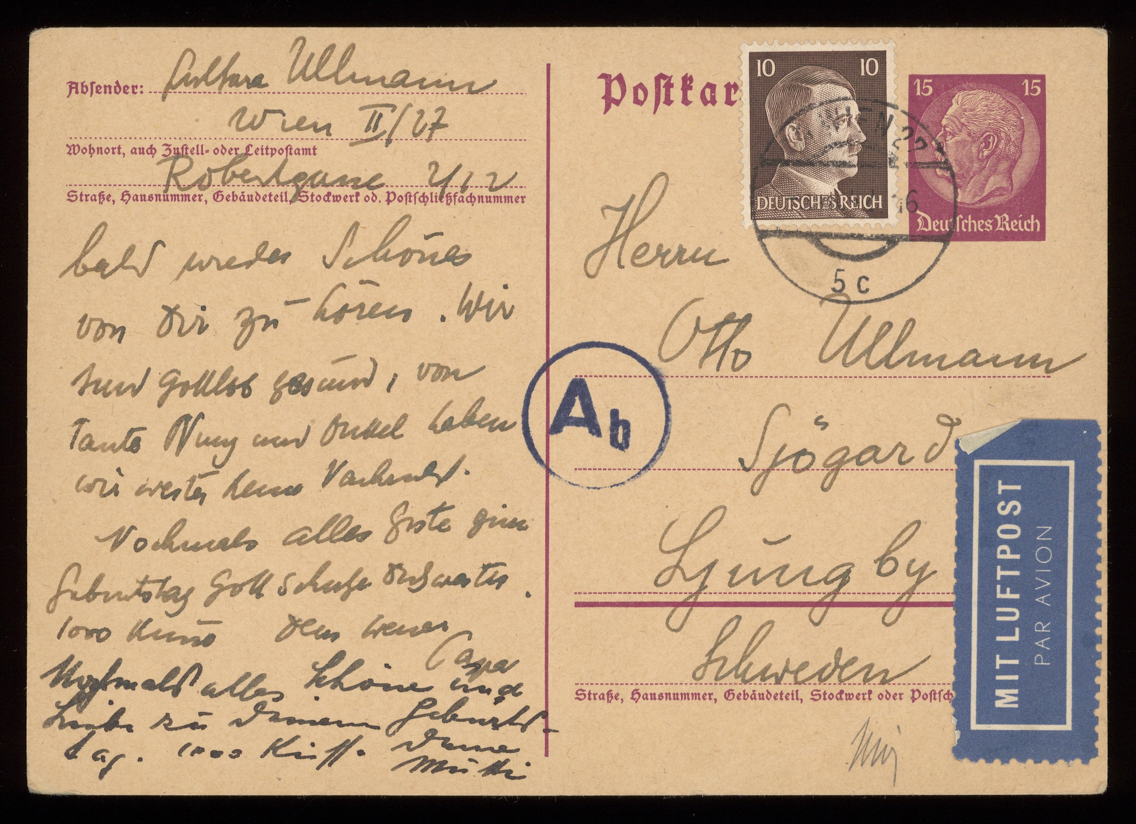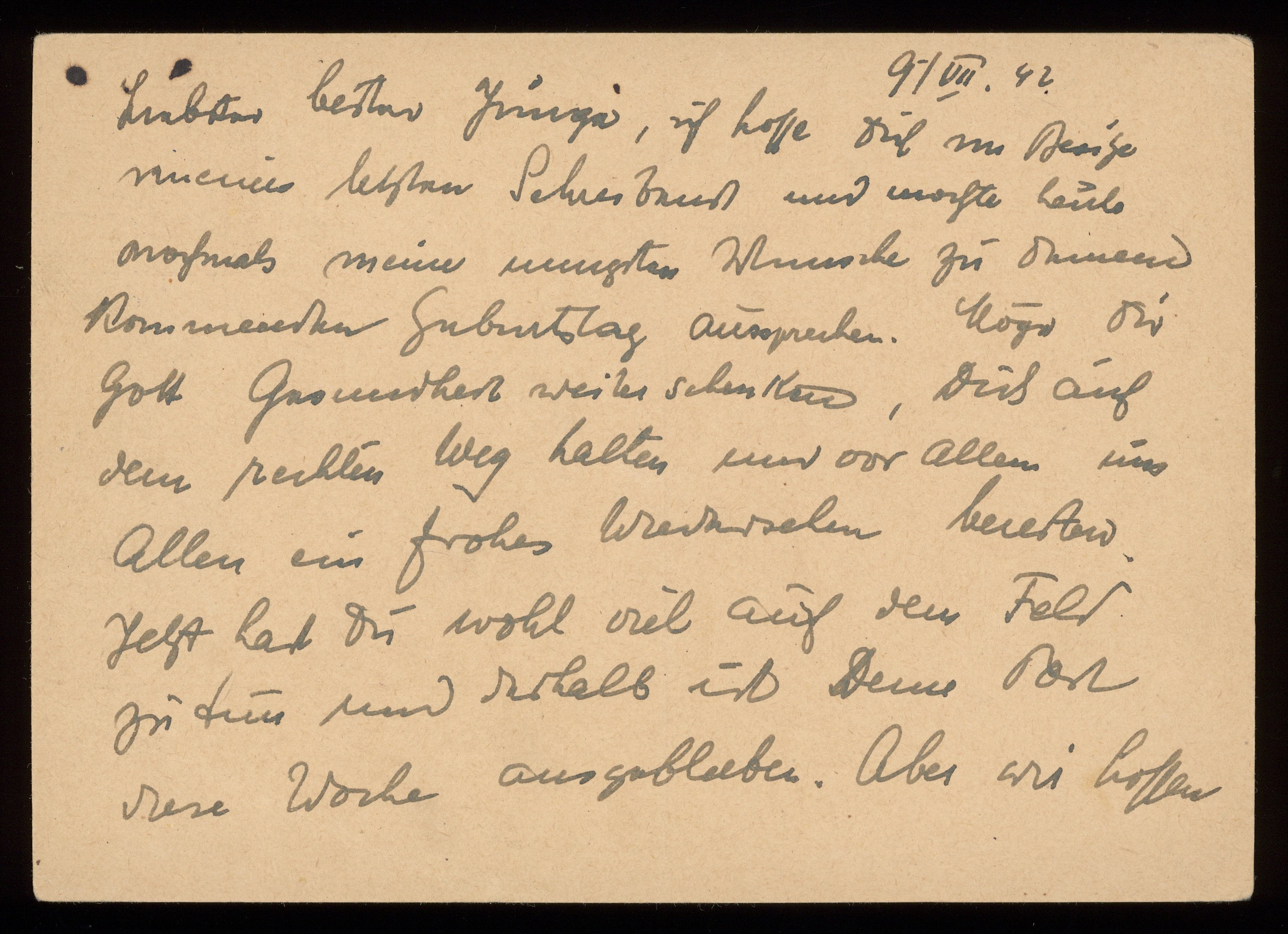 Brev till Otto Ullman från föräldrarna Josef och Elise Ullmann daterat 9 juli 1942 Wien.