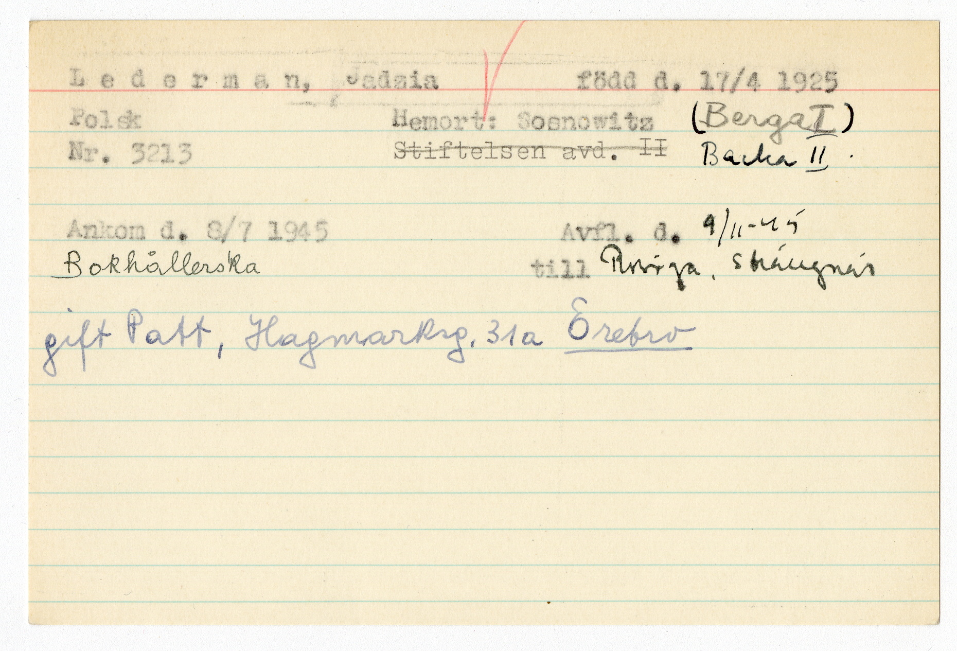 Registerkort Jadzia Lederman