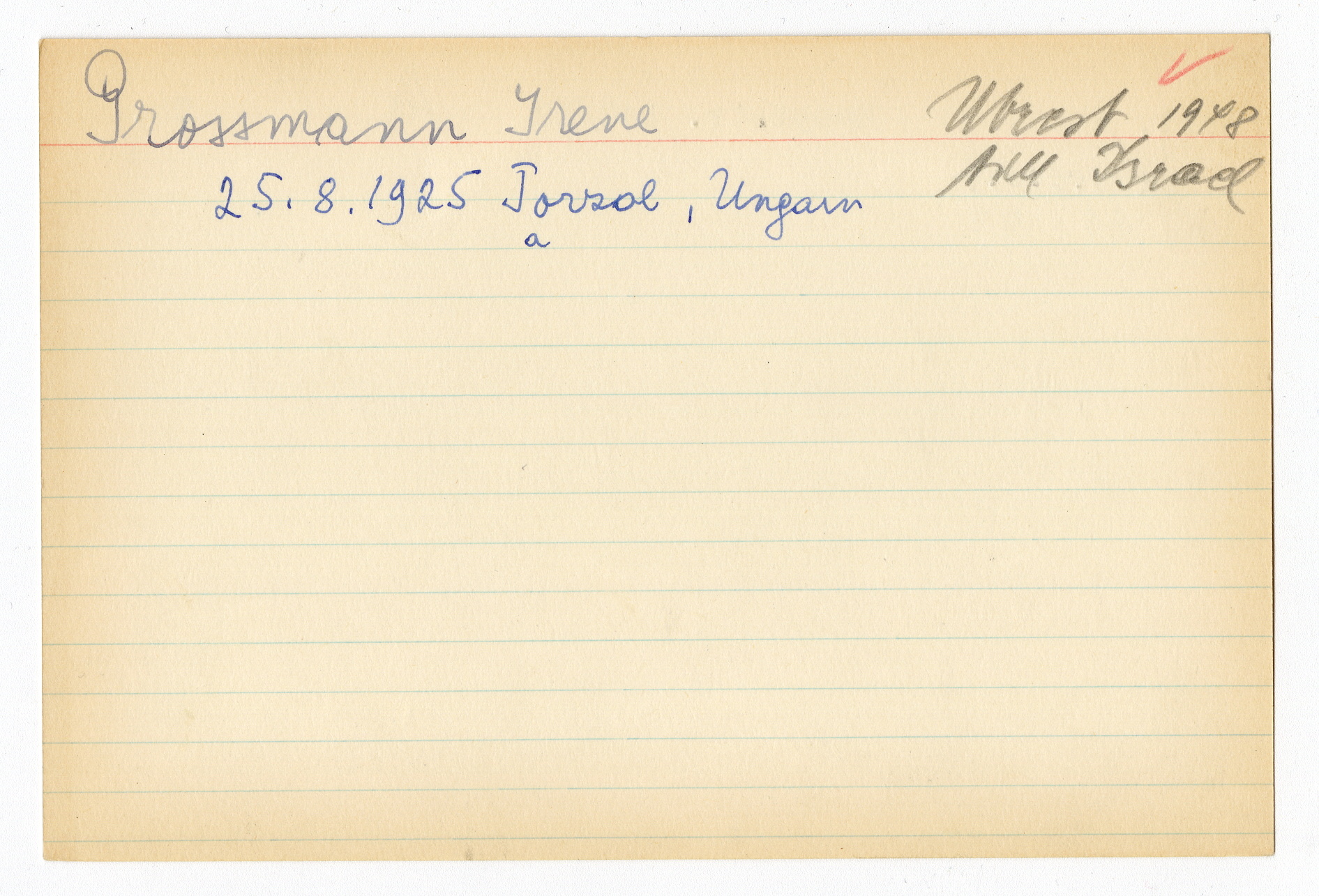 Registerkort Irene Grossmann och Rosa Saxl