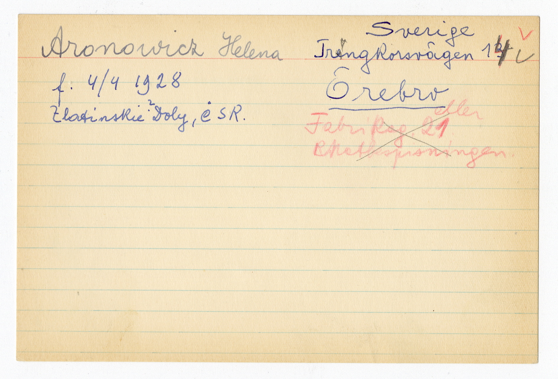 Registerkort Helena Aronowicz och Oskar Scheuer