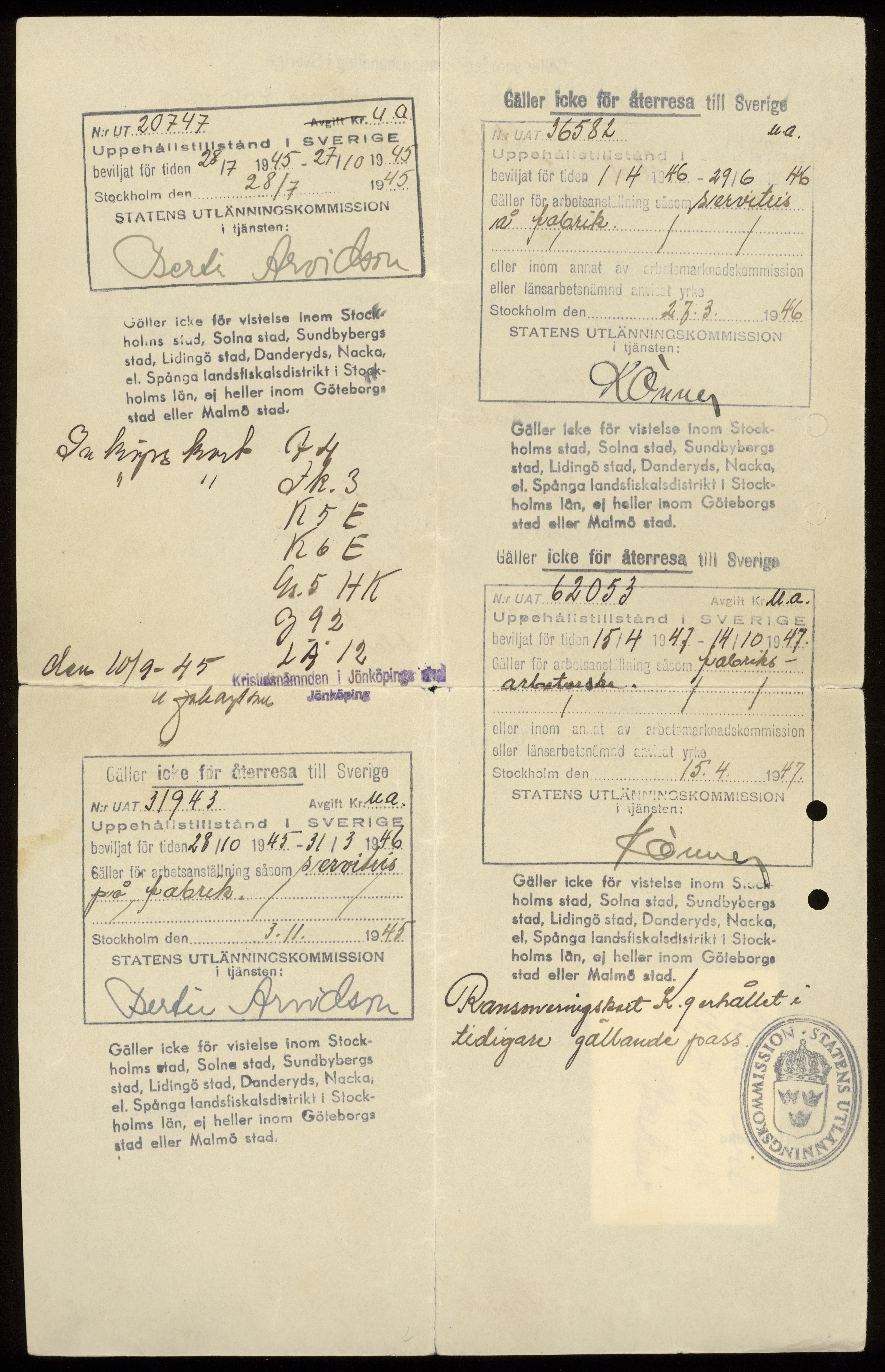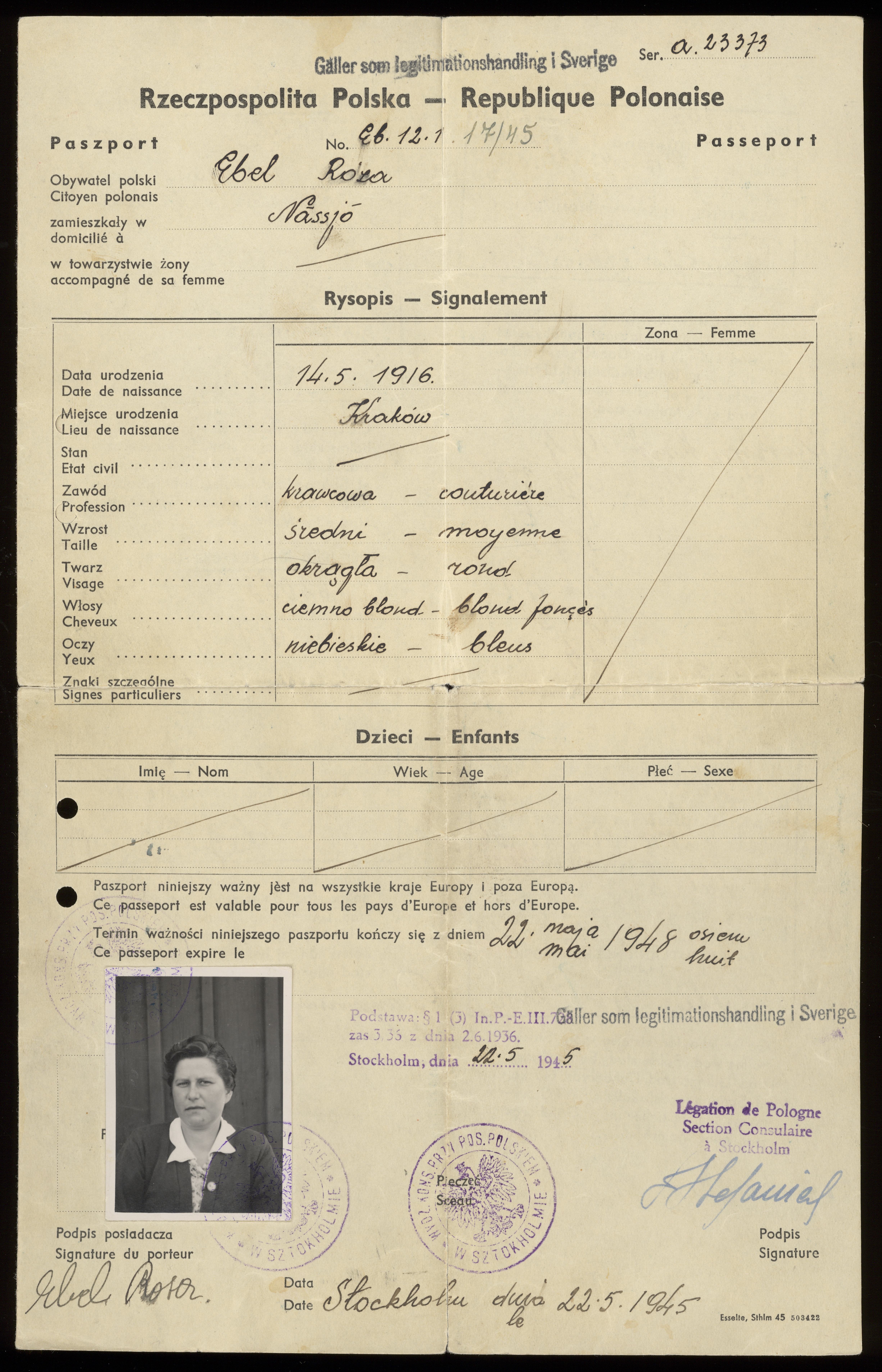 Passhandling med foto utfärdad av Polska legationen i Stockholm.