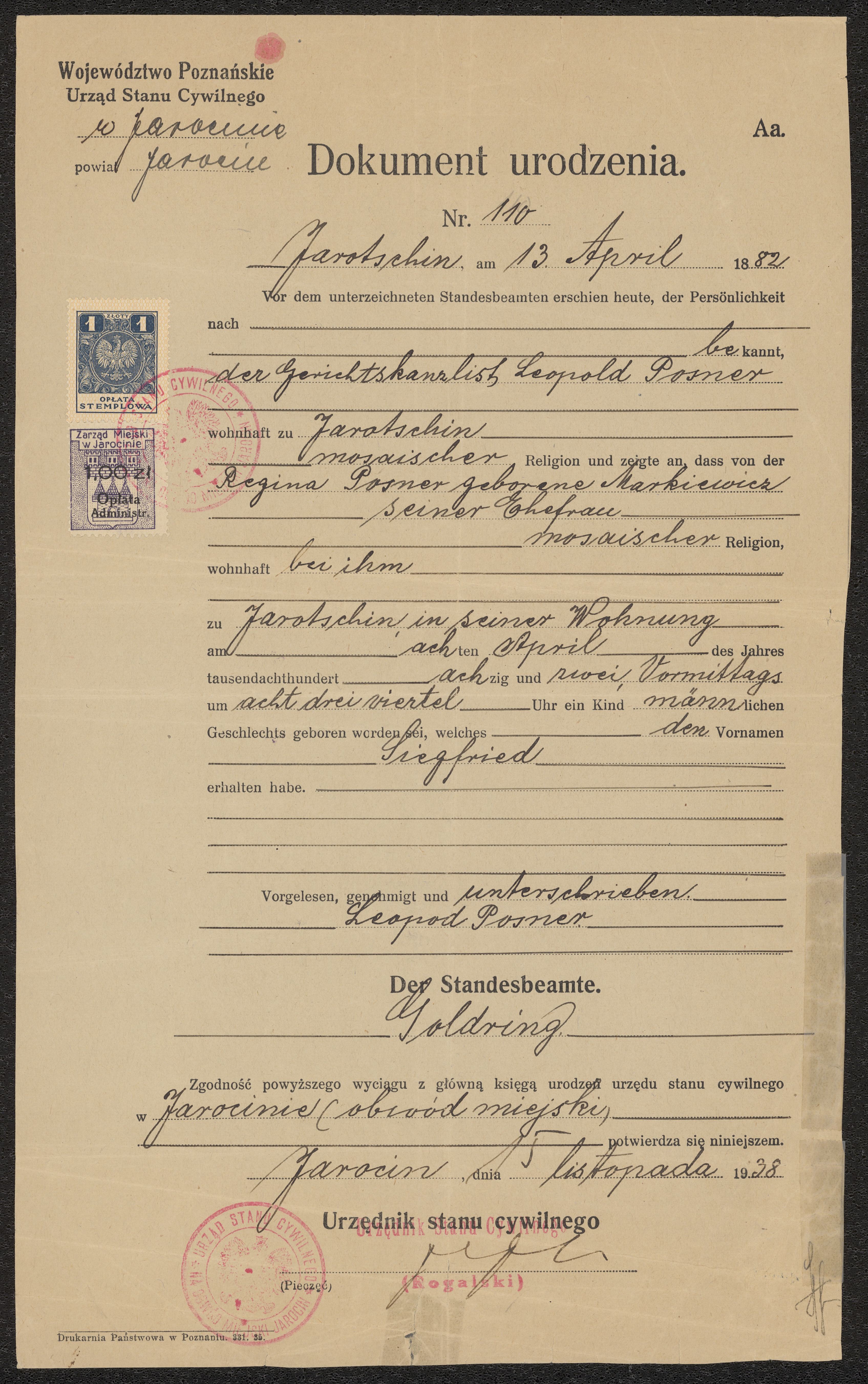 Födelsebevis Siegfrid Posner