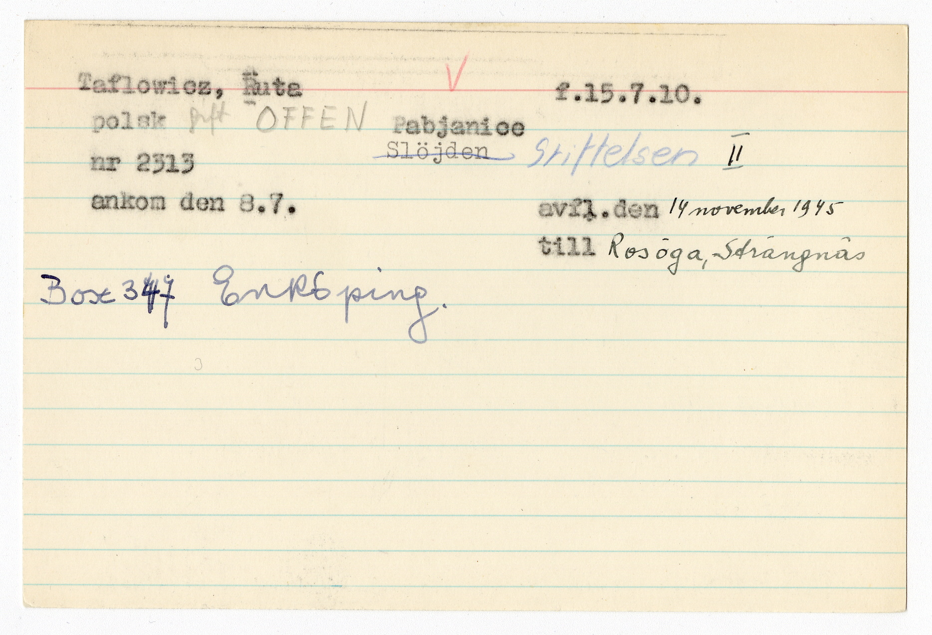 Ett skrivkort med patientuppgifter gällande Ruta Offen.