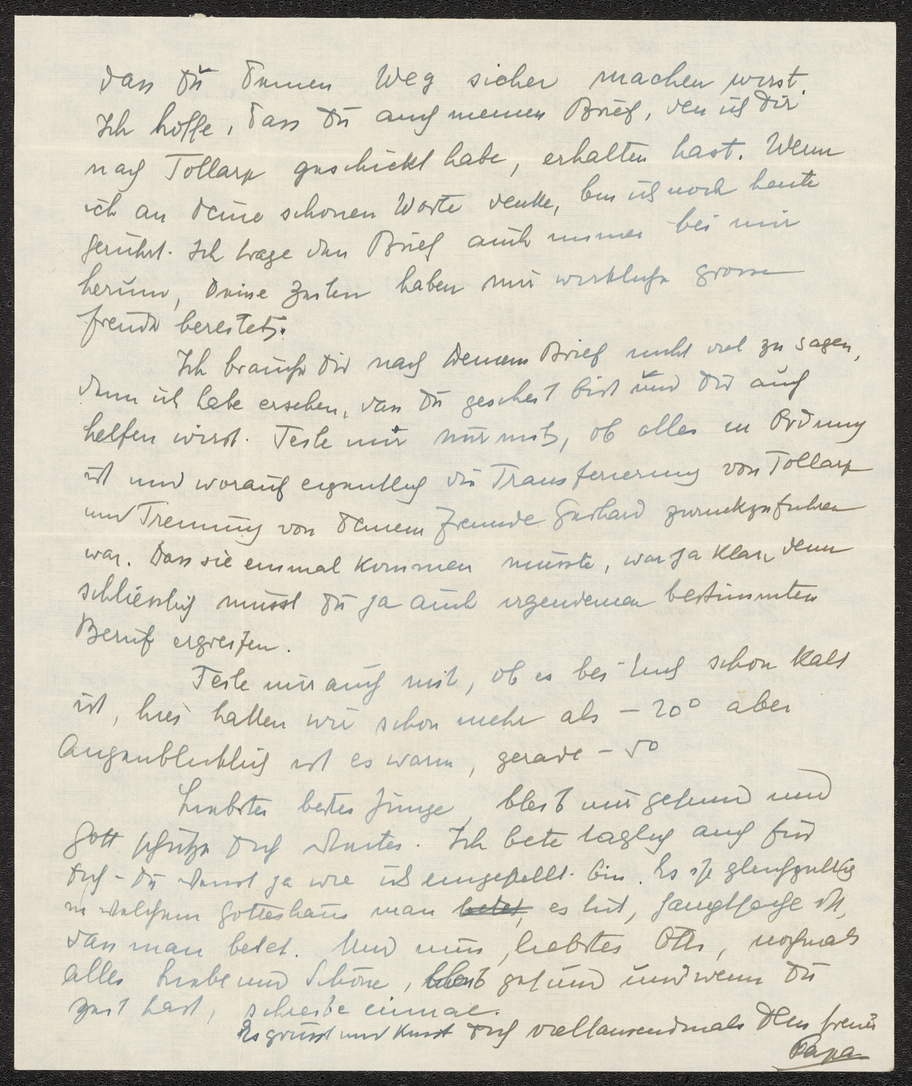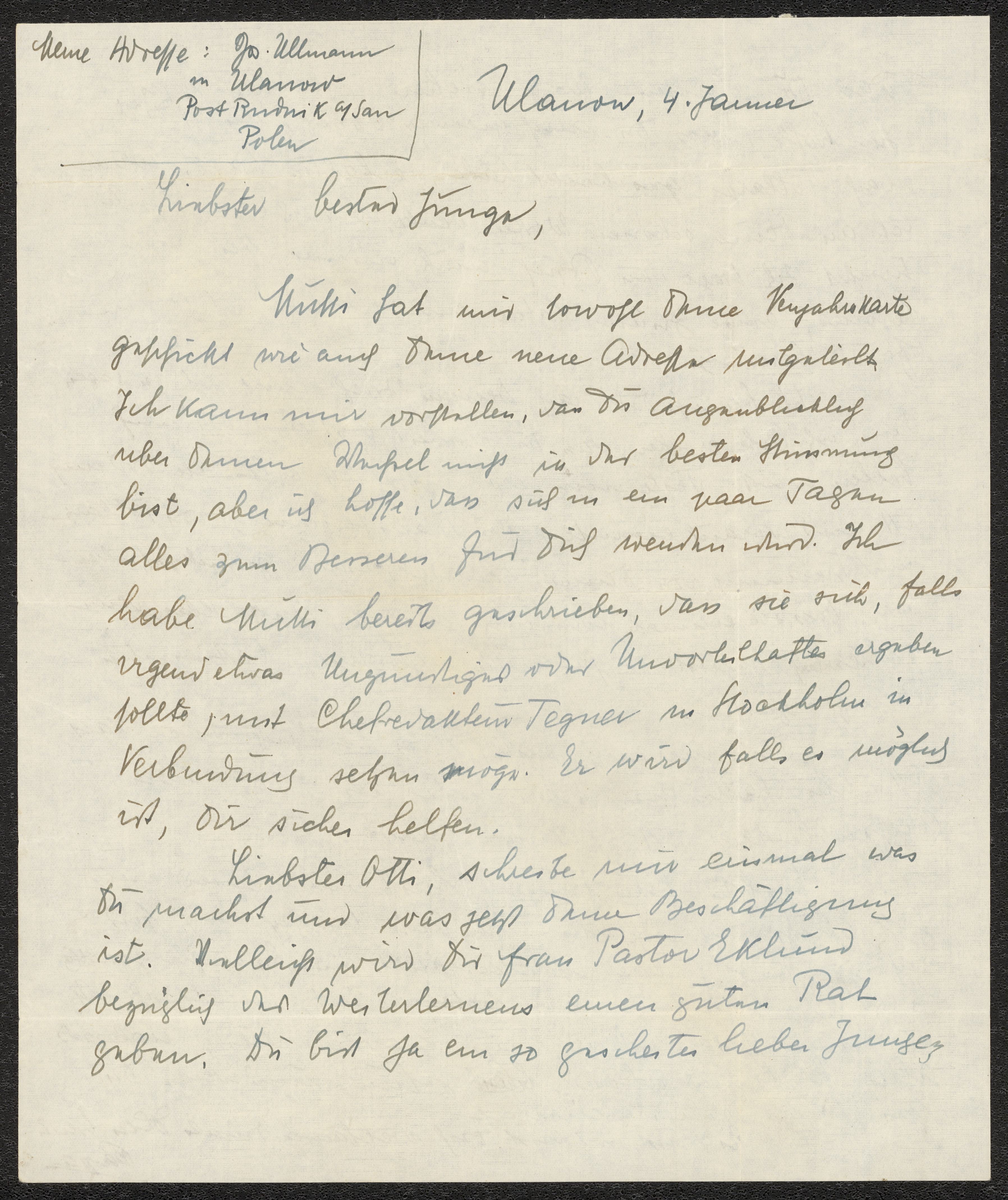 Brev till Otto Ullman från föräldrarna Josef och Elise Ullmann daterat 4 januari 1940 Ulanow.