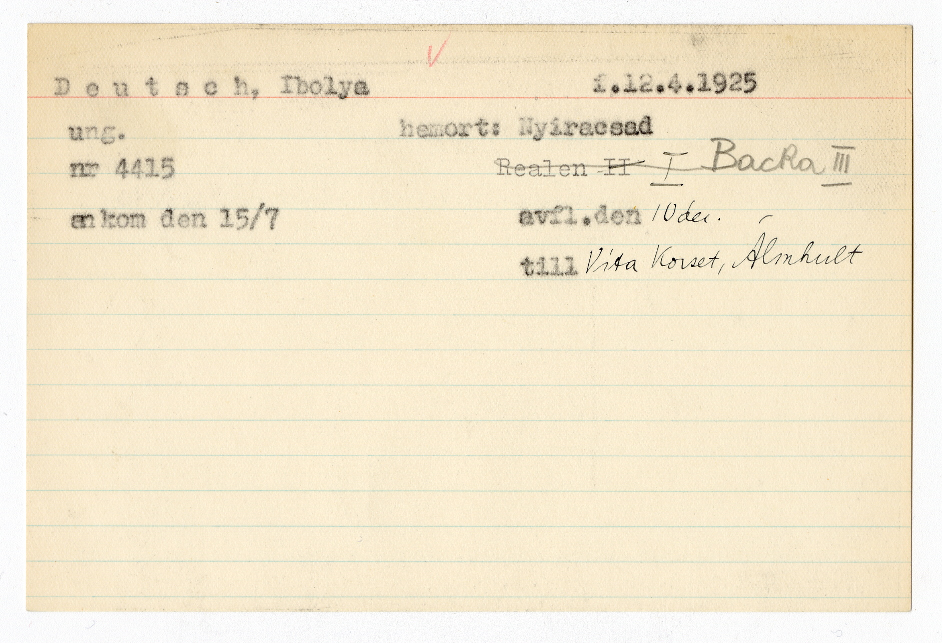 Registerkort Ibolya Deutsch