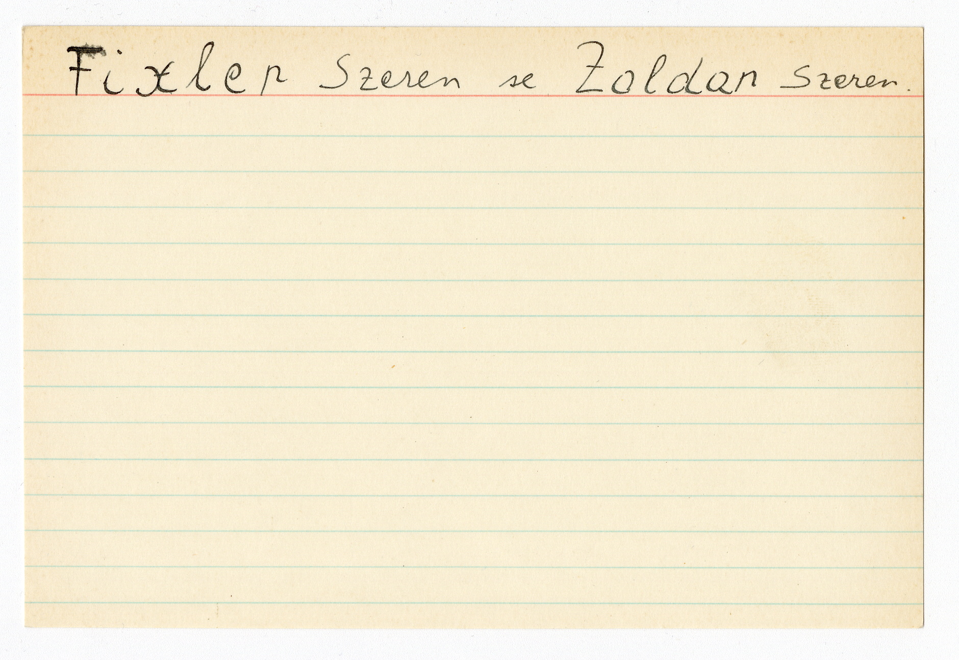 Ett skrivkort med patientuppgifter gällande Szeren Fixler.