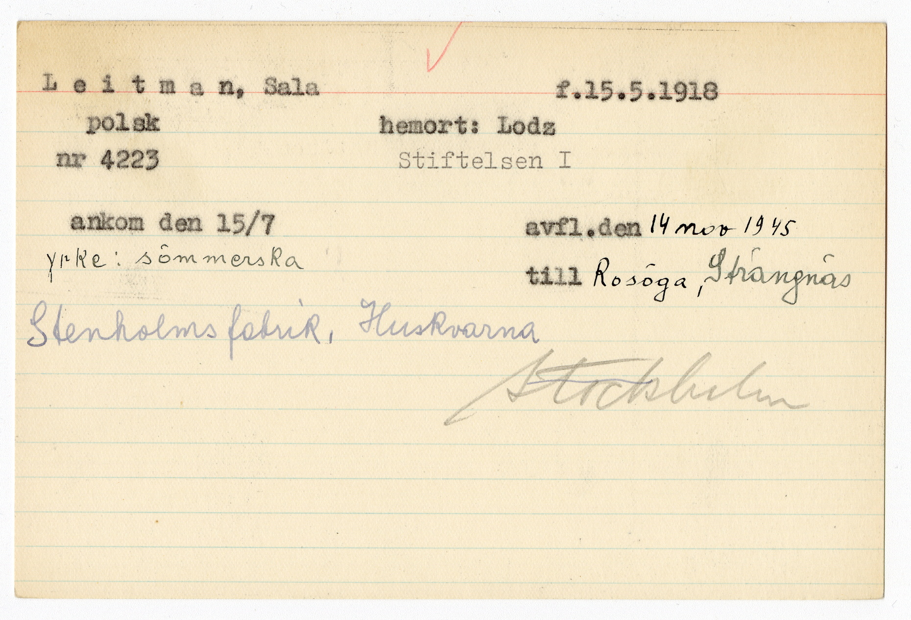 Registerkort Sala Leitman