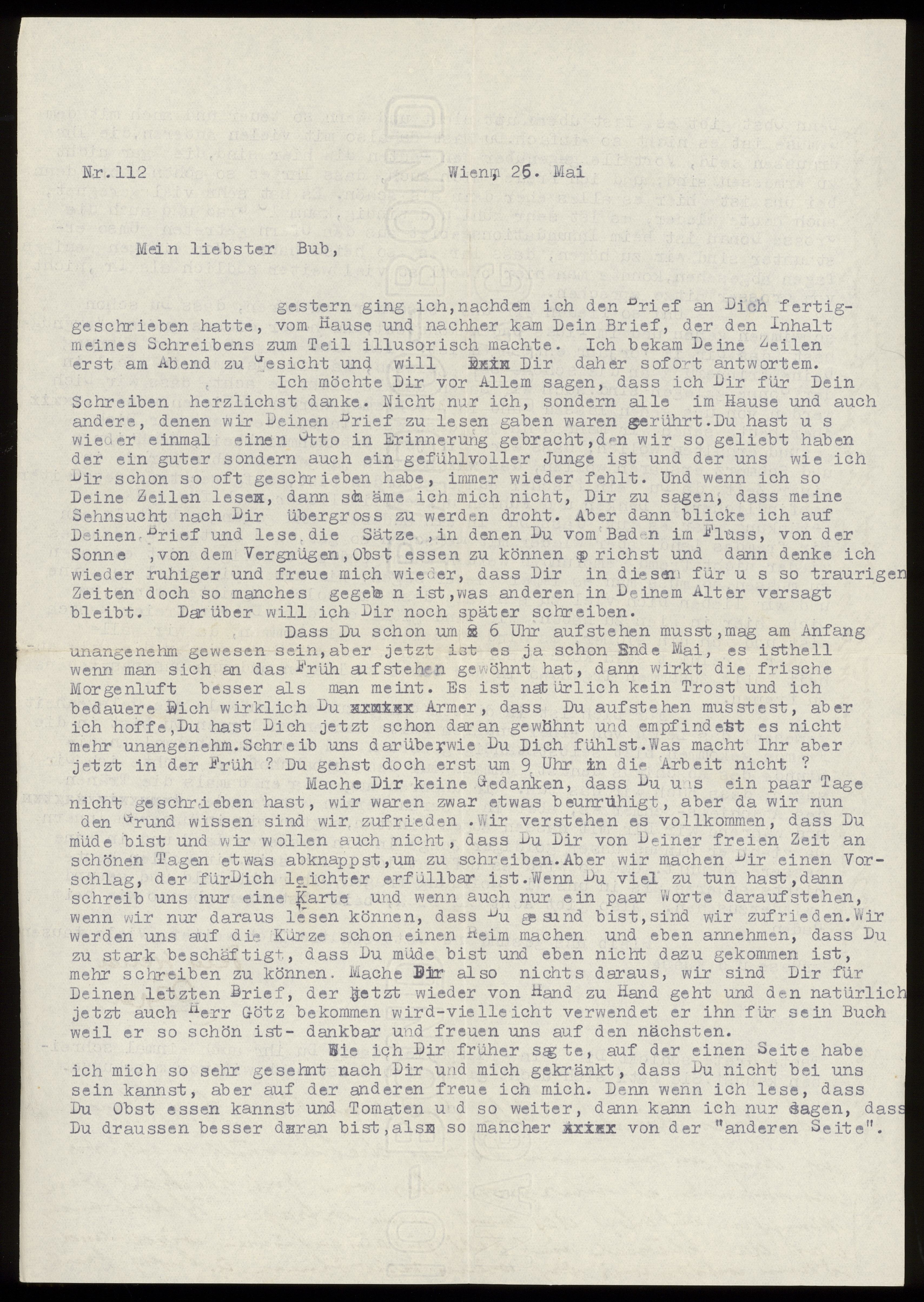 Maskinskrivet brev till Otto Ullman från föräldrarna Josef och Elise Ullmann daterat 26 maj 1939 Wien.