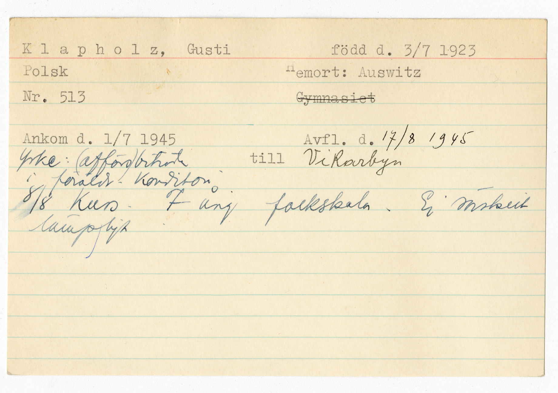 Registerkort Gusti Klapholz