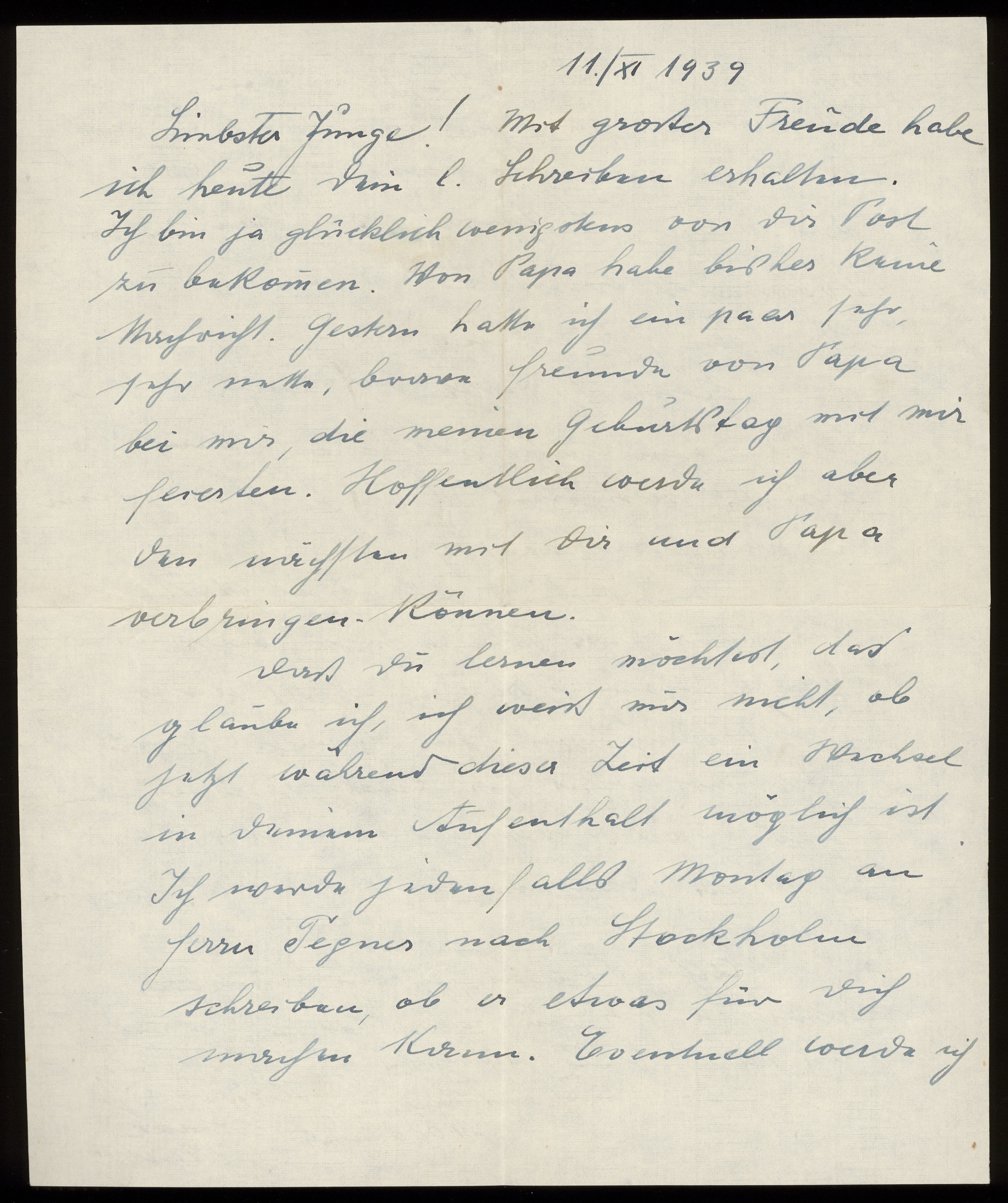 Brev till Otto Ullman från föräldrarna Josef och Elise Ullmann daterat 11 november 1939 Wien.