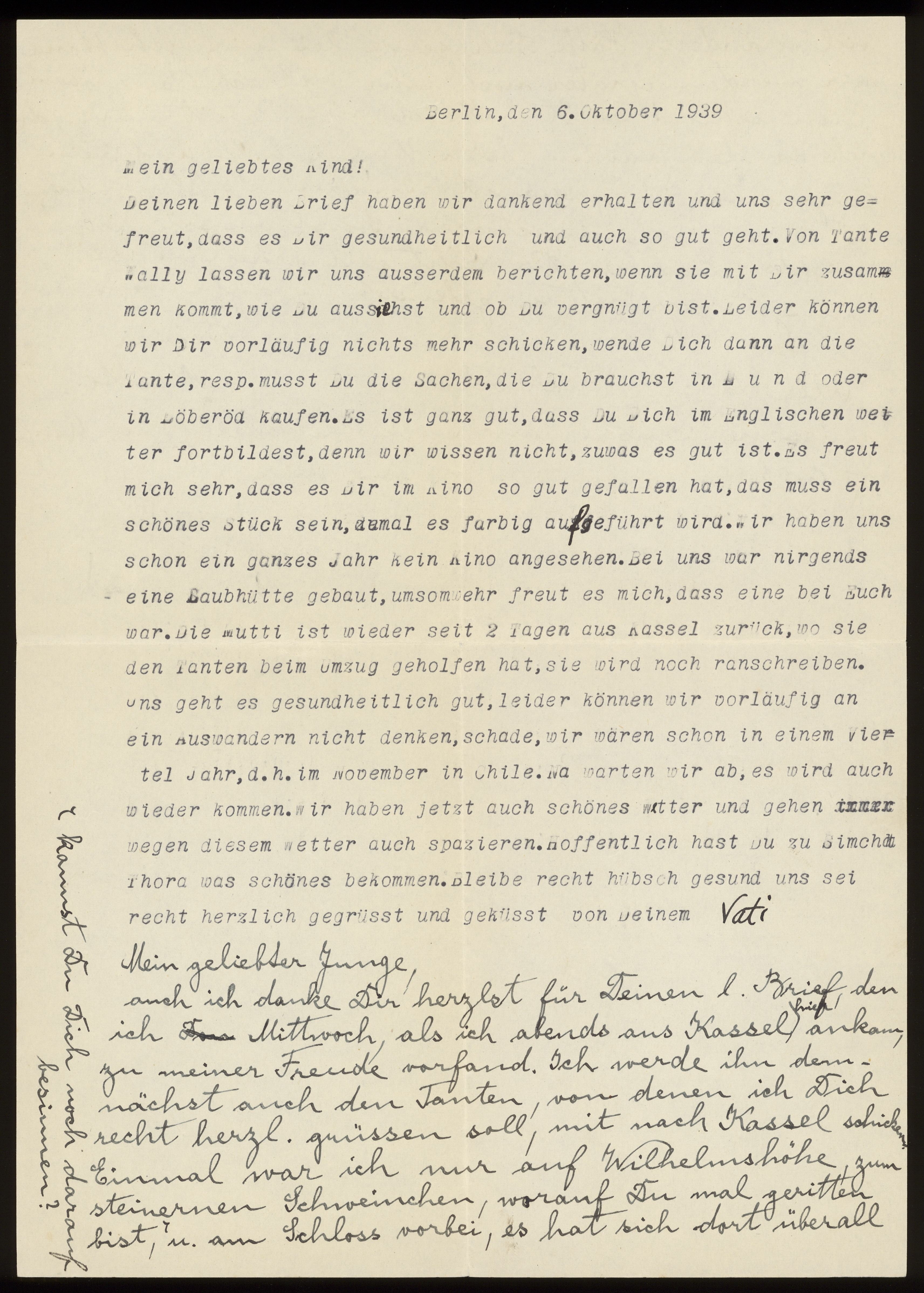 Brev från föräldrarna Anna och Siegfried Posner till sonen Ludwig Posner daterat 6 oktober 1939.