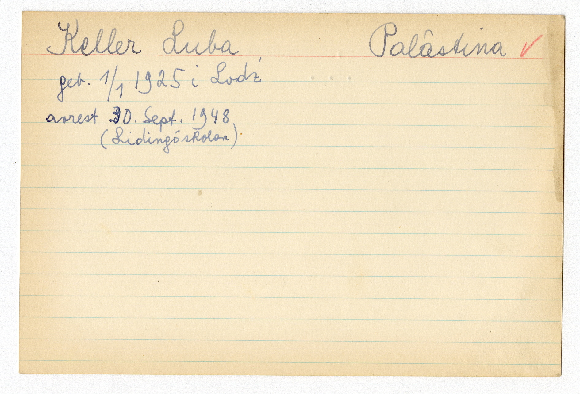 Registerkort Luba Keller och Henriette Schoenfaerber