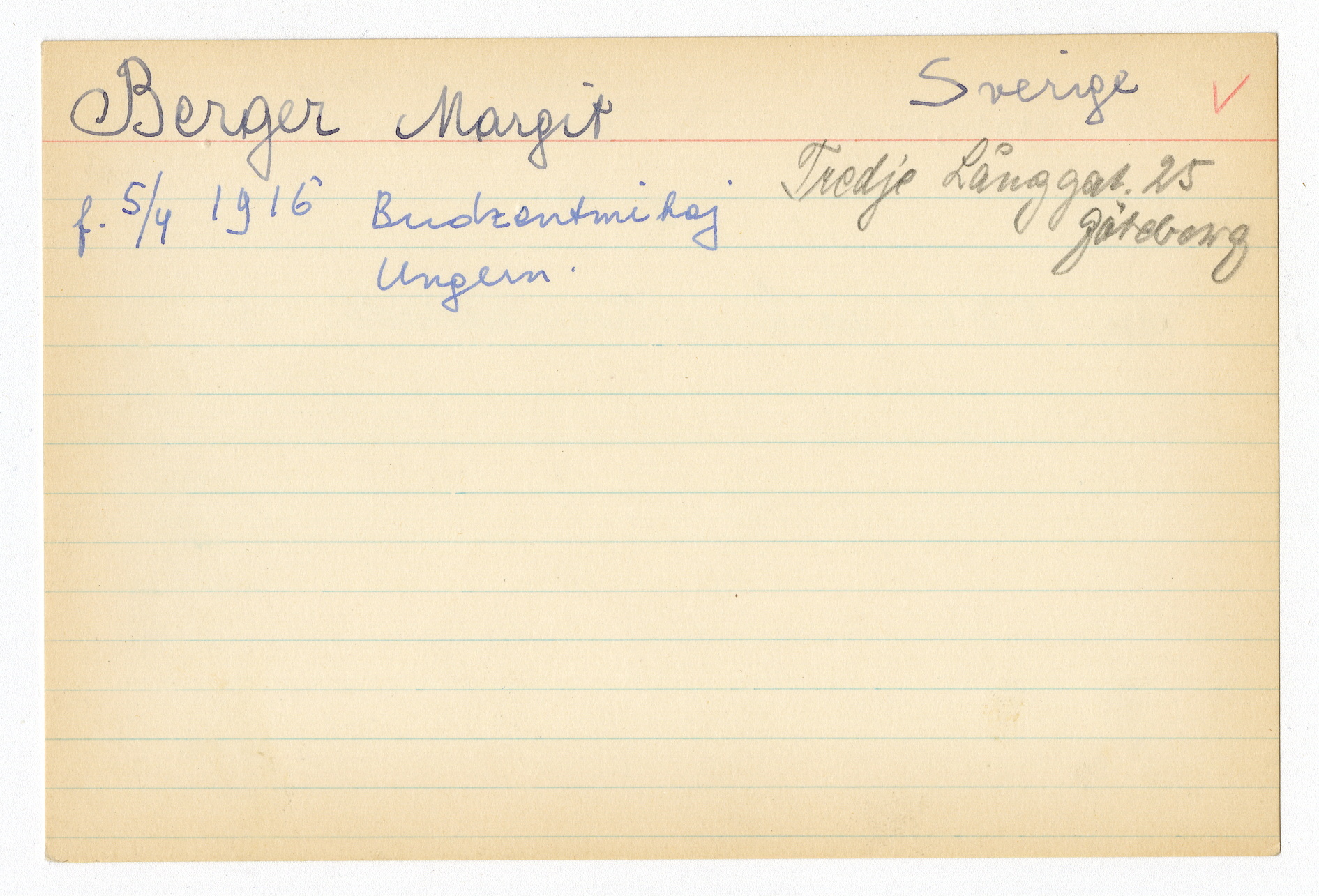 Registerkort Margit Berger och Erna Stein
