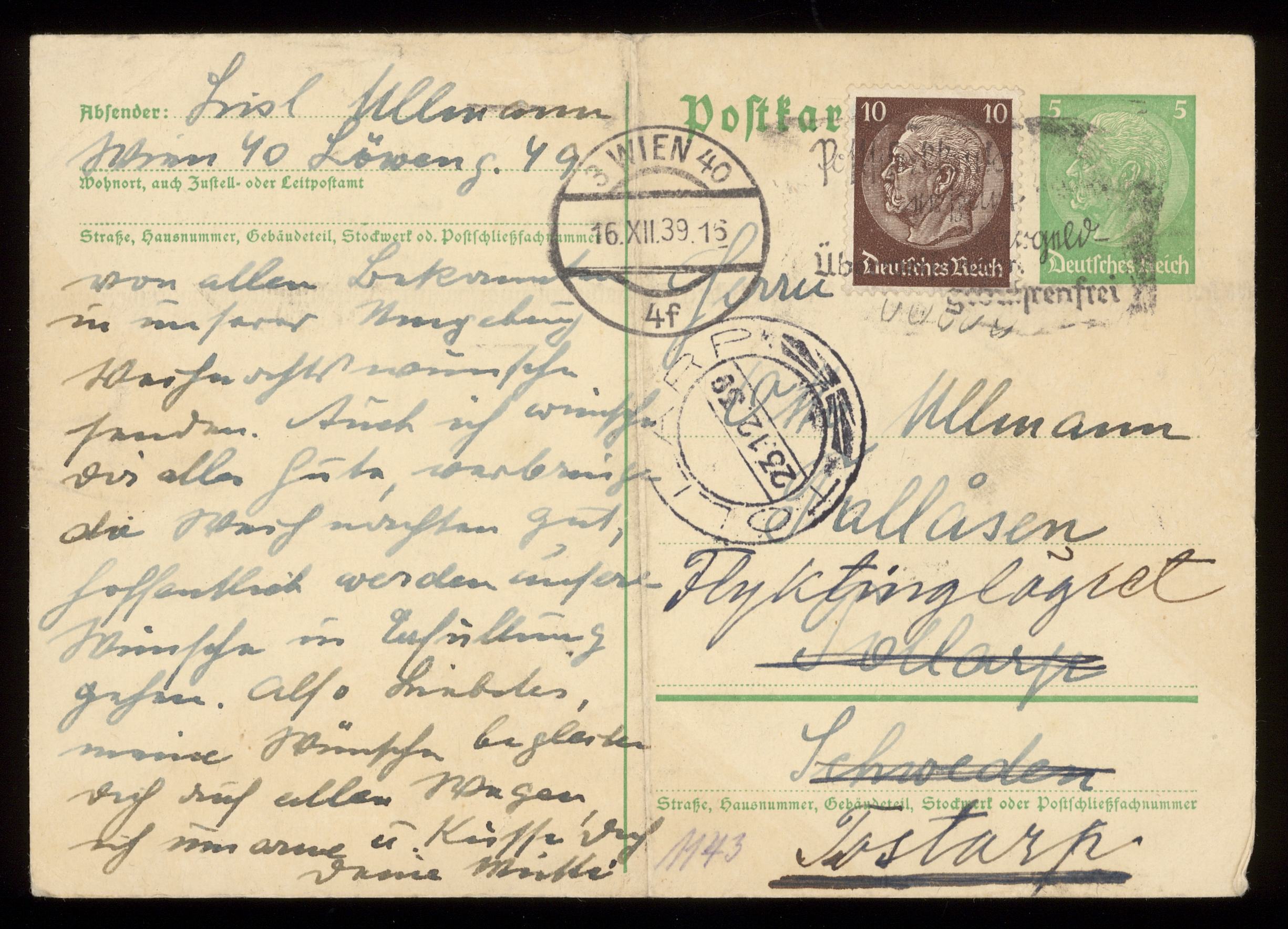 Brev från Elise och Josef Ullmann 1939-12-16